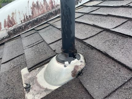 - Damaged rubber boots at all plumbing vent flashing(s).