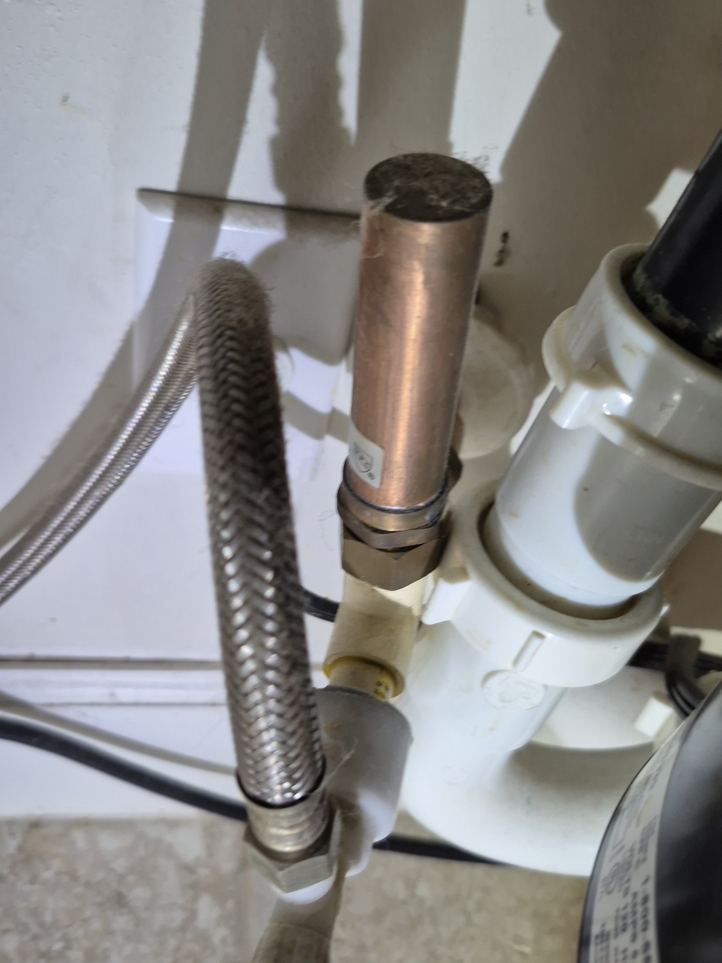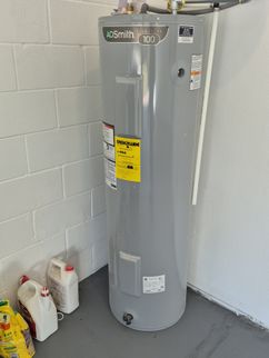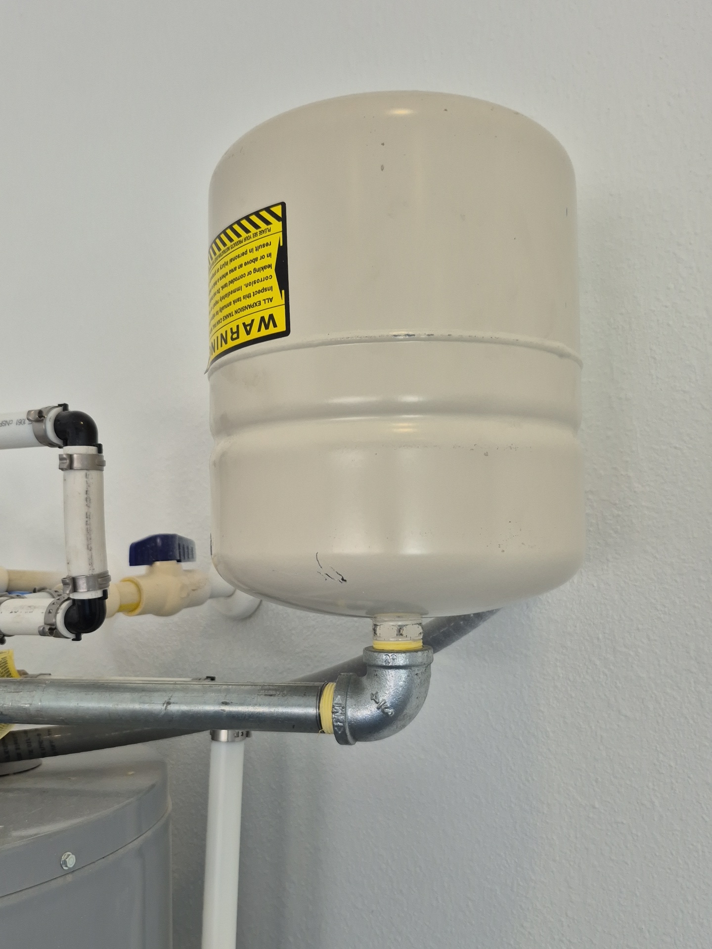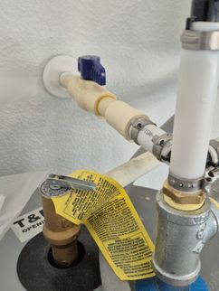 The discharge tube for the water heater temperature and pressure relief valve (TPRV) is not correctly installed - see attached link. This is a potential safety hazard. Ideally, the discharge tube for a relief valve: