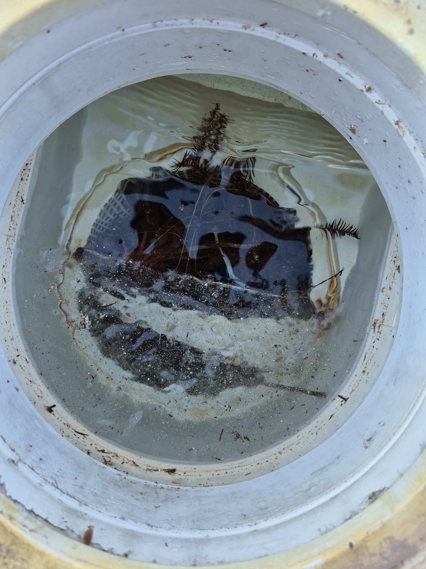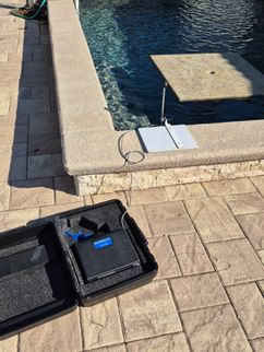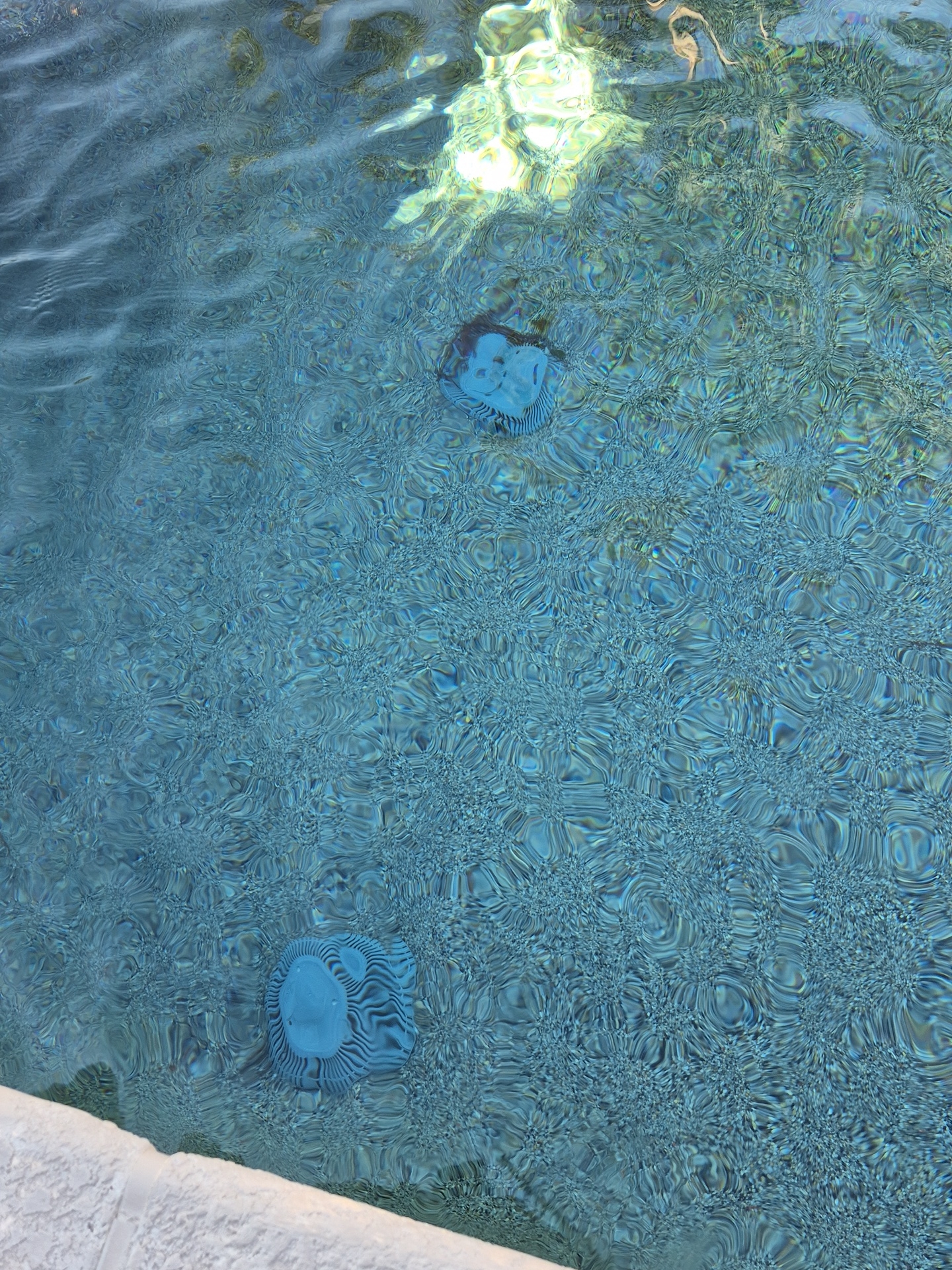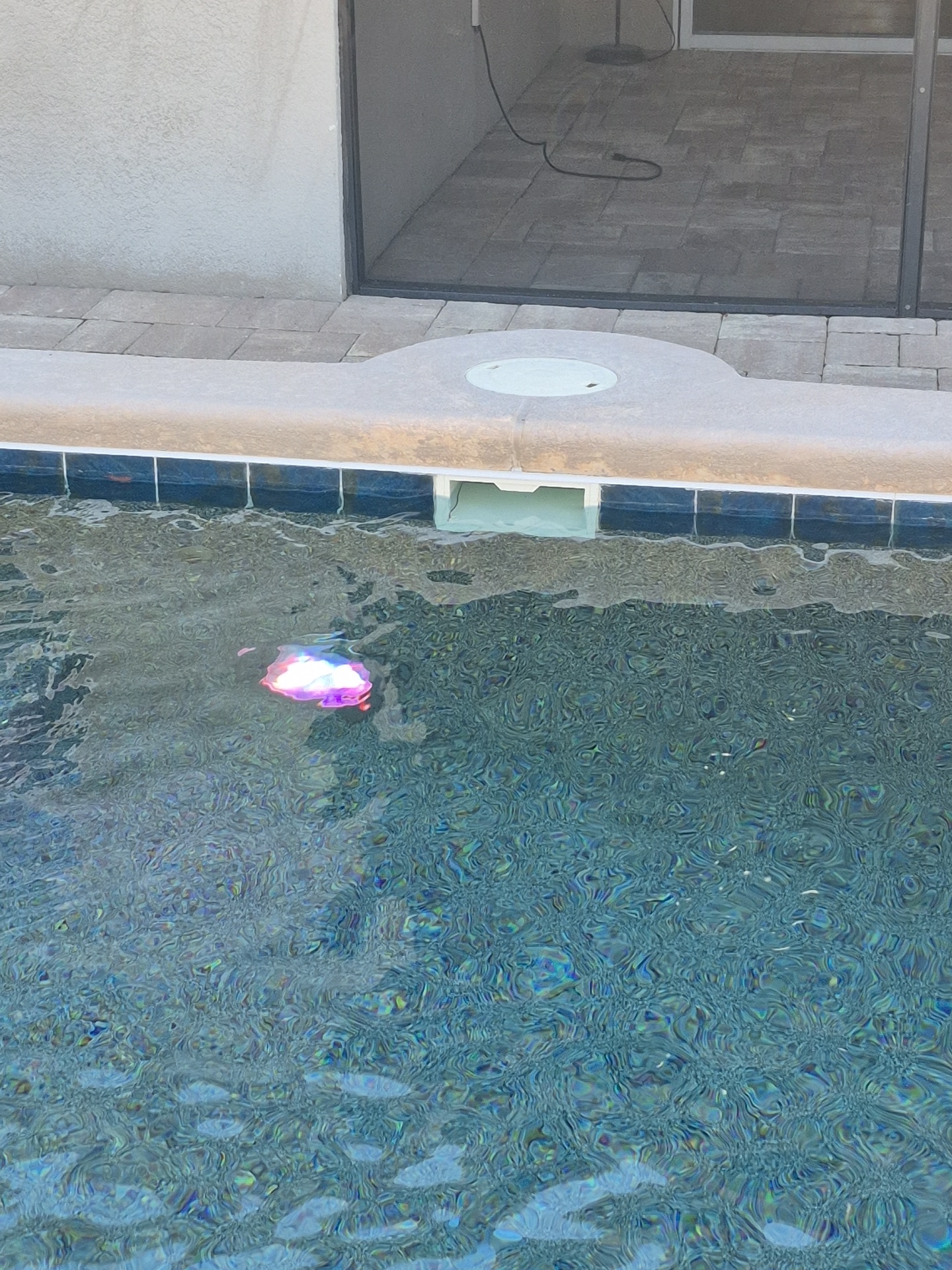 This pool, like all pools, has a skimmer cleaning system. A skimmer helps to clean the pool by using suction to create a current that pulls the surface water towards to skimmer opening, capturing floating debris such as leaves, flower petals, dirt, twigs, dead insects, oil (sunblock), etc., before the waste can sink to the pool's bottom. The debris is collected in the basket in the well accessed from the deck's surface. This basket should be routinely checked and emptied to maintain optimal results.