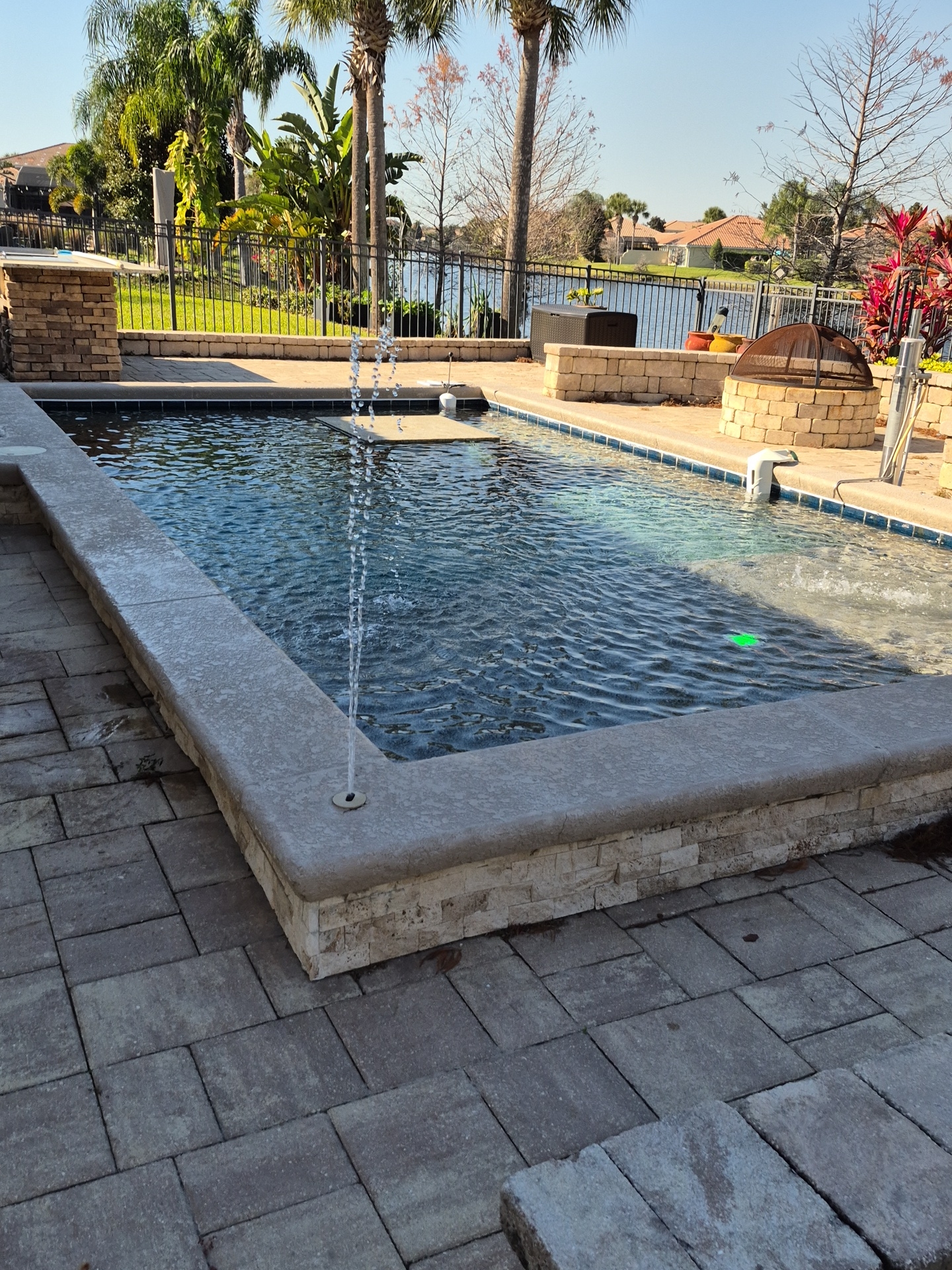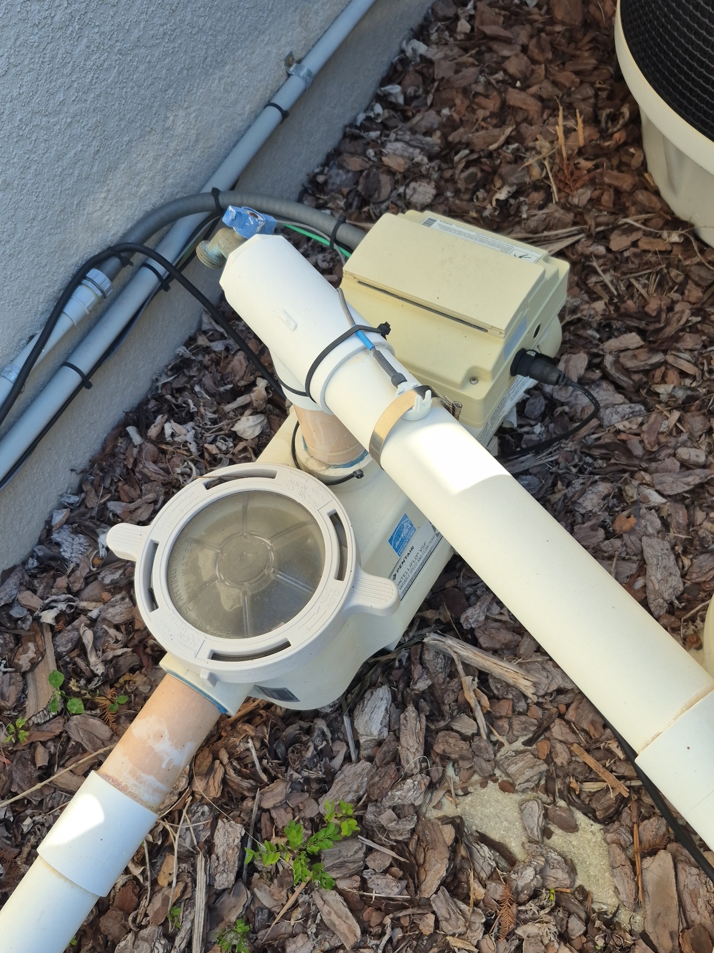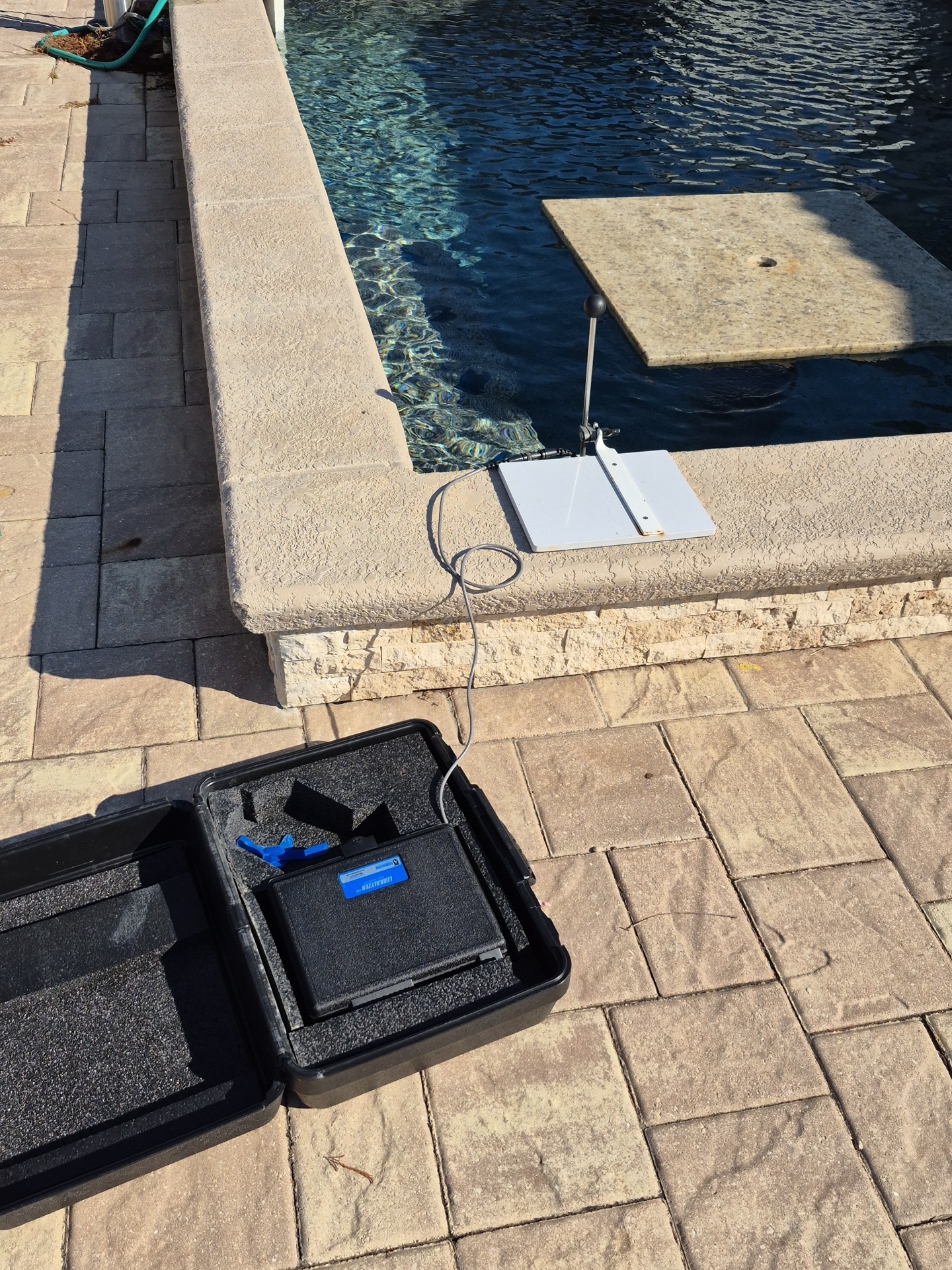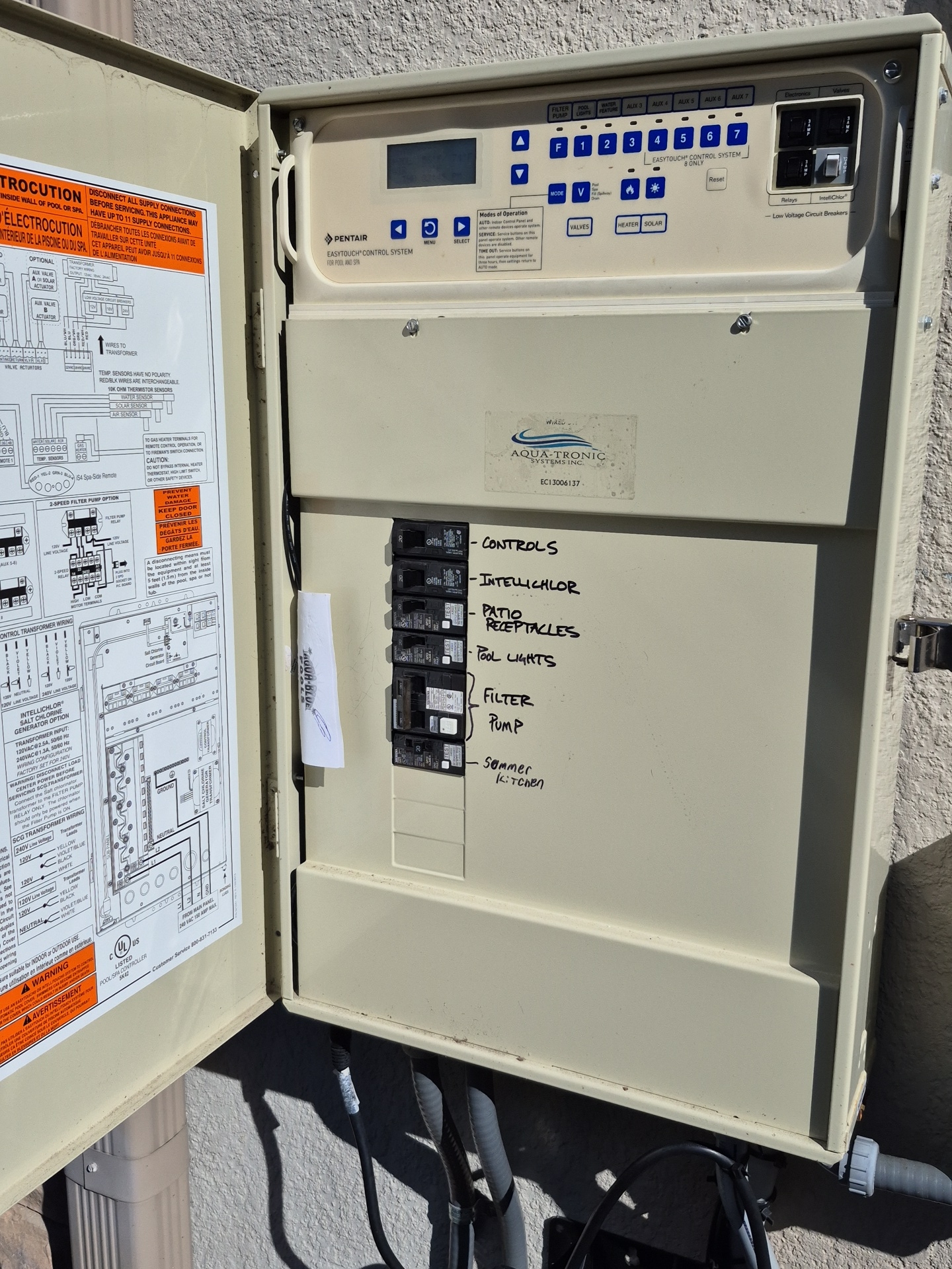 This pool, like all pools, has a skimmer cleaning system. A skimmer helps to clean the pool by using suction to create a current that pulls the surface water towards to skimmer opening, capturing floating debris such as leaves, flower petals, dirt, twigs, dead insects, oil (sunblock), etc., before the waste can sink to the pool's bottom. The debris is collected in the basket in the well accessed from the deck's surface. This basket should be routinely checked and emptied to maintain optimal results.