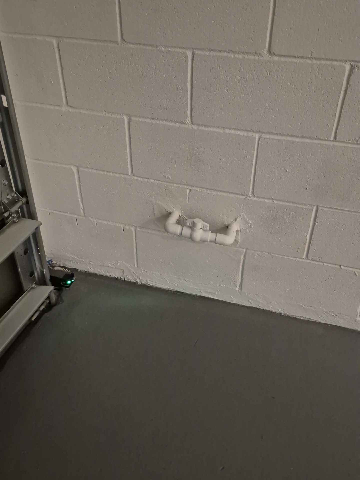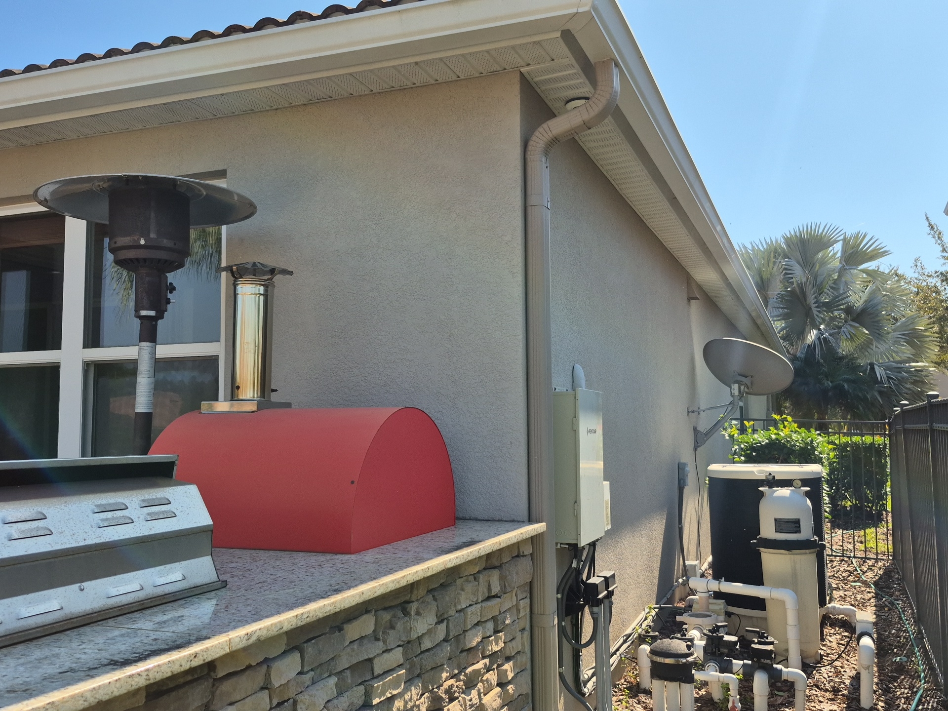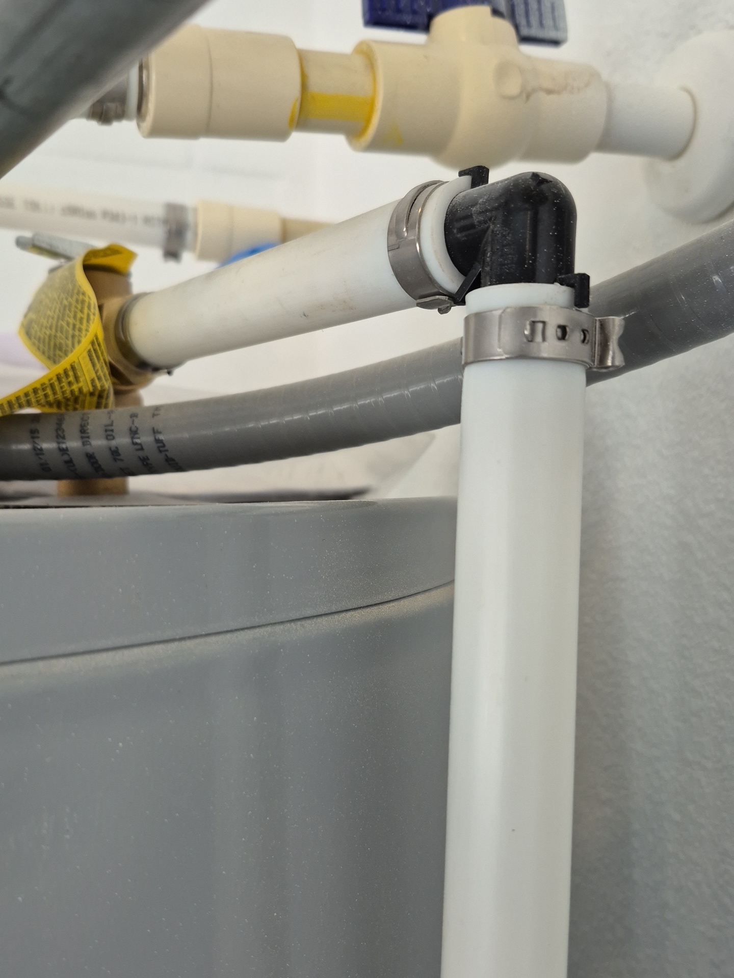 - Slopes to drain to prevent water pooling inside the discharge tube