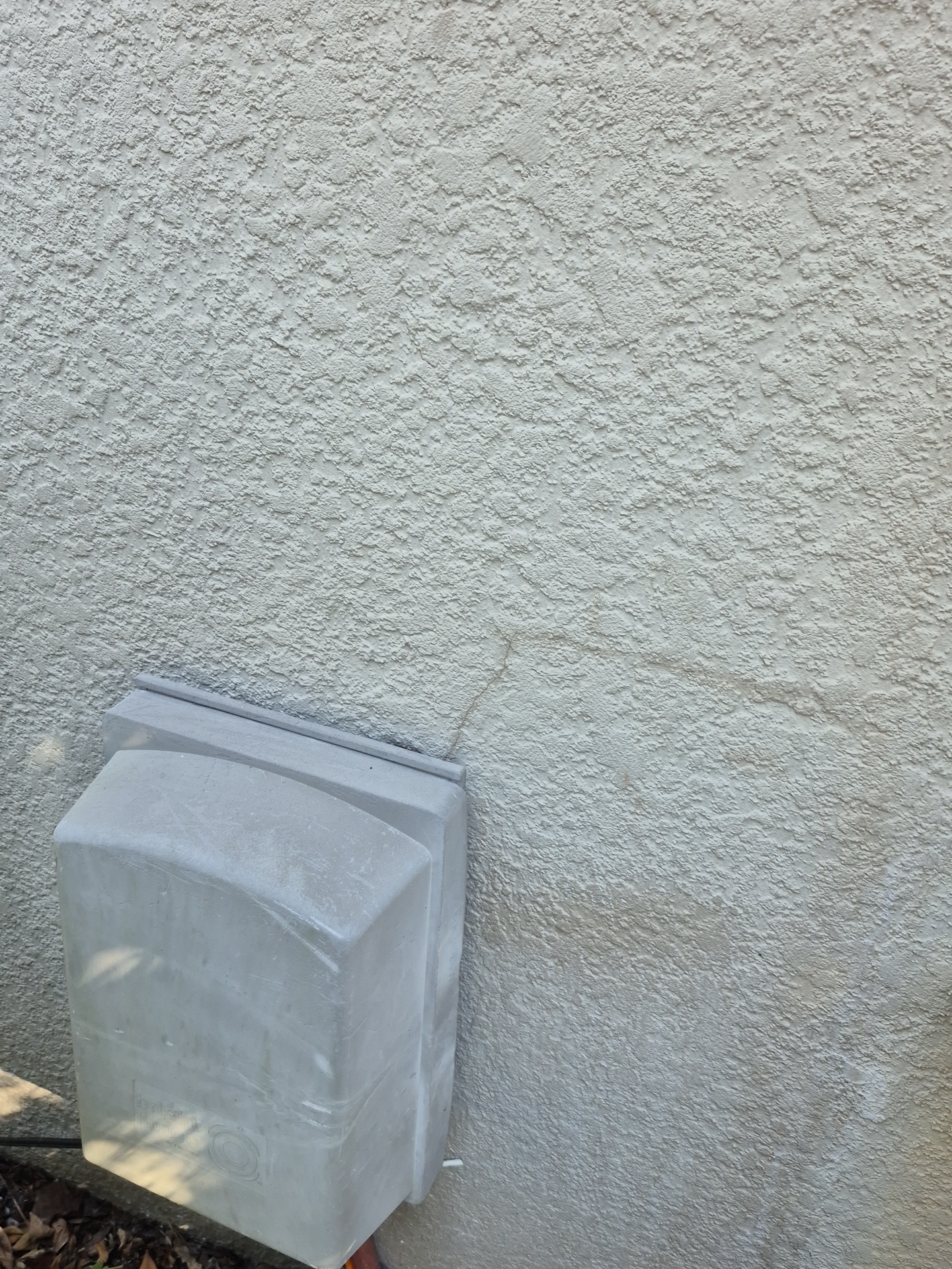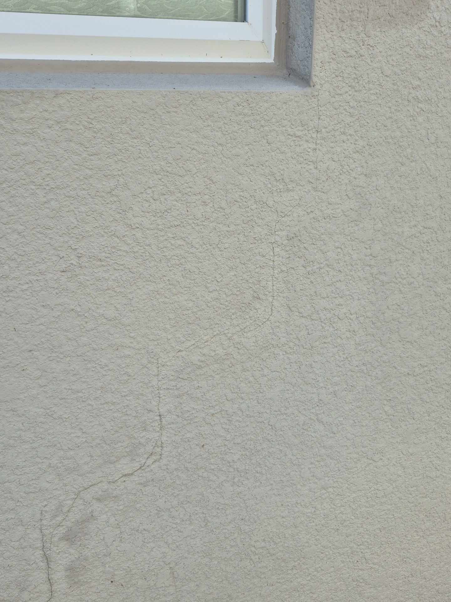Stucco cracking noted. This is normally considered thermal cracking and is common. Recommend sealing cracks and painting.