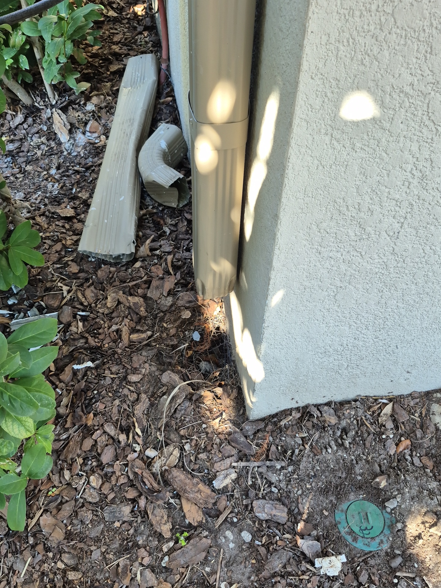 Repair all of the loose / damaged. Tune up all downspouts to ensure they are reliably secured. Locations noted during inspection: