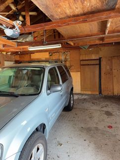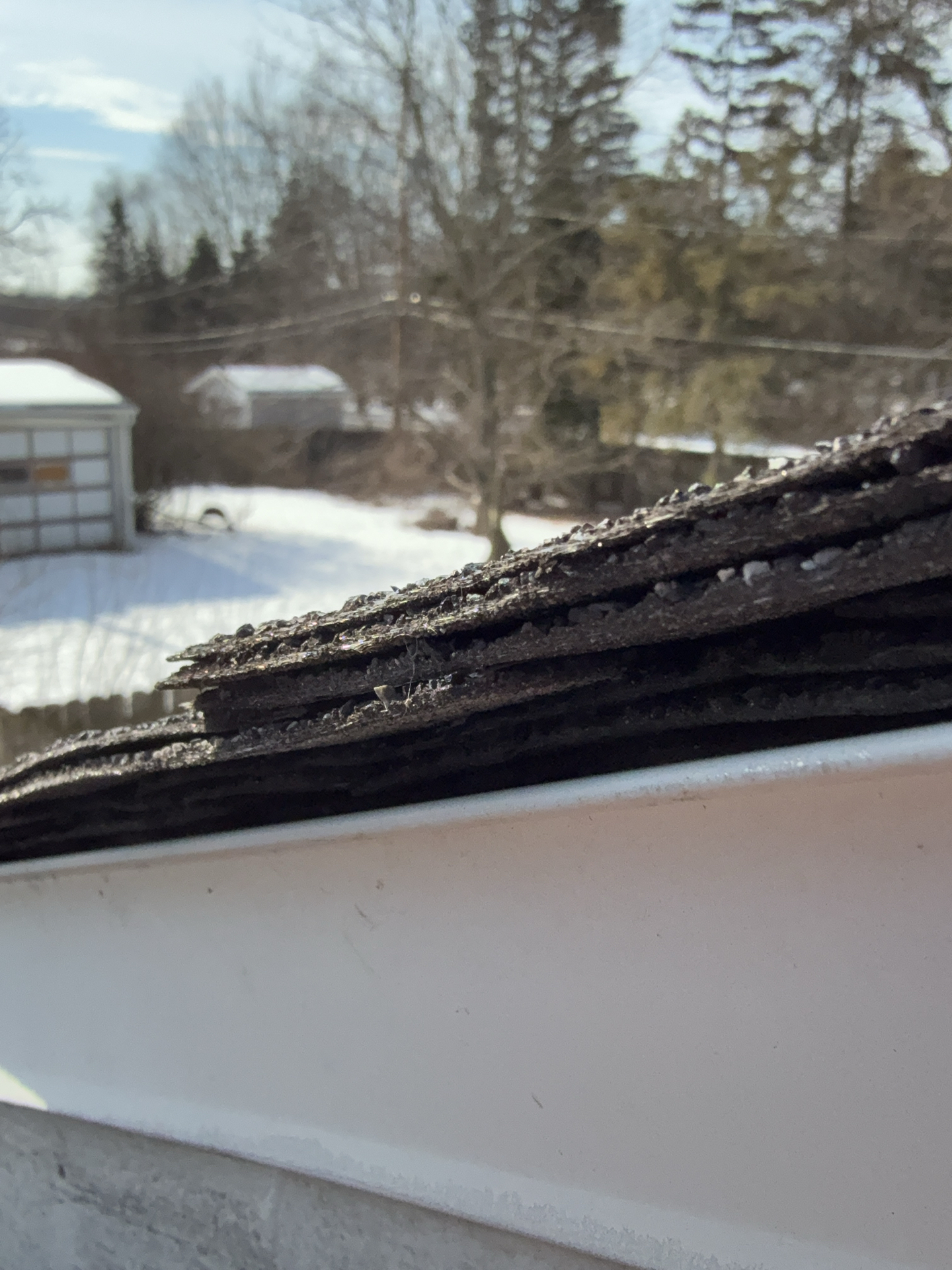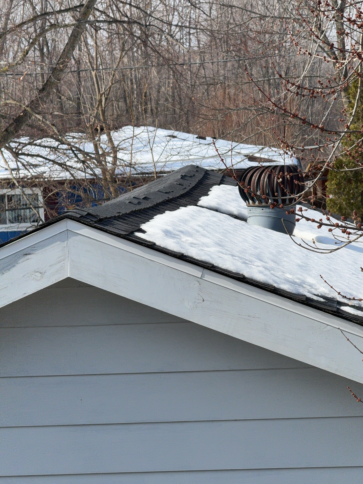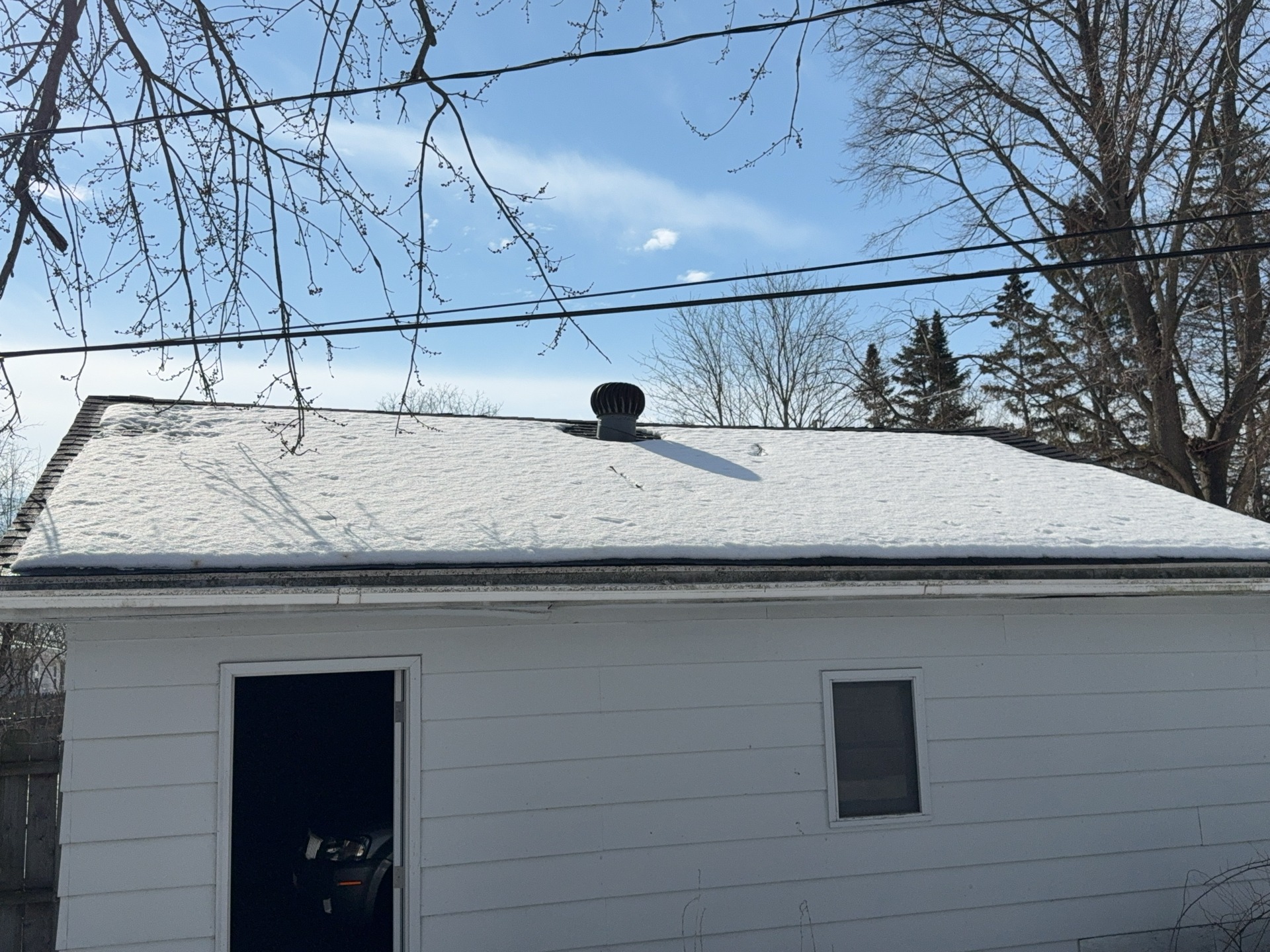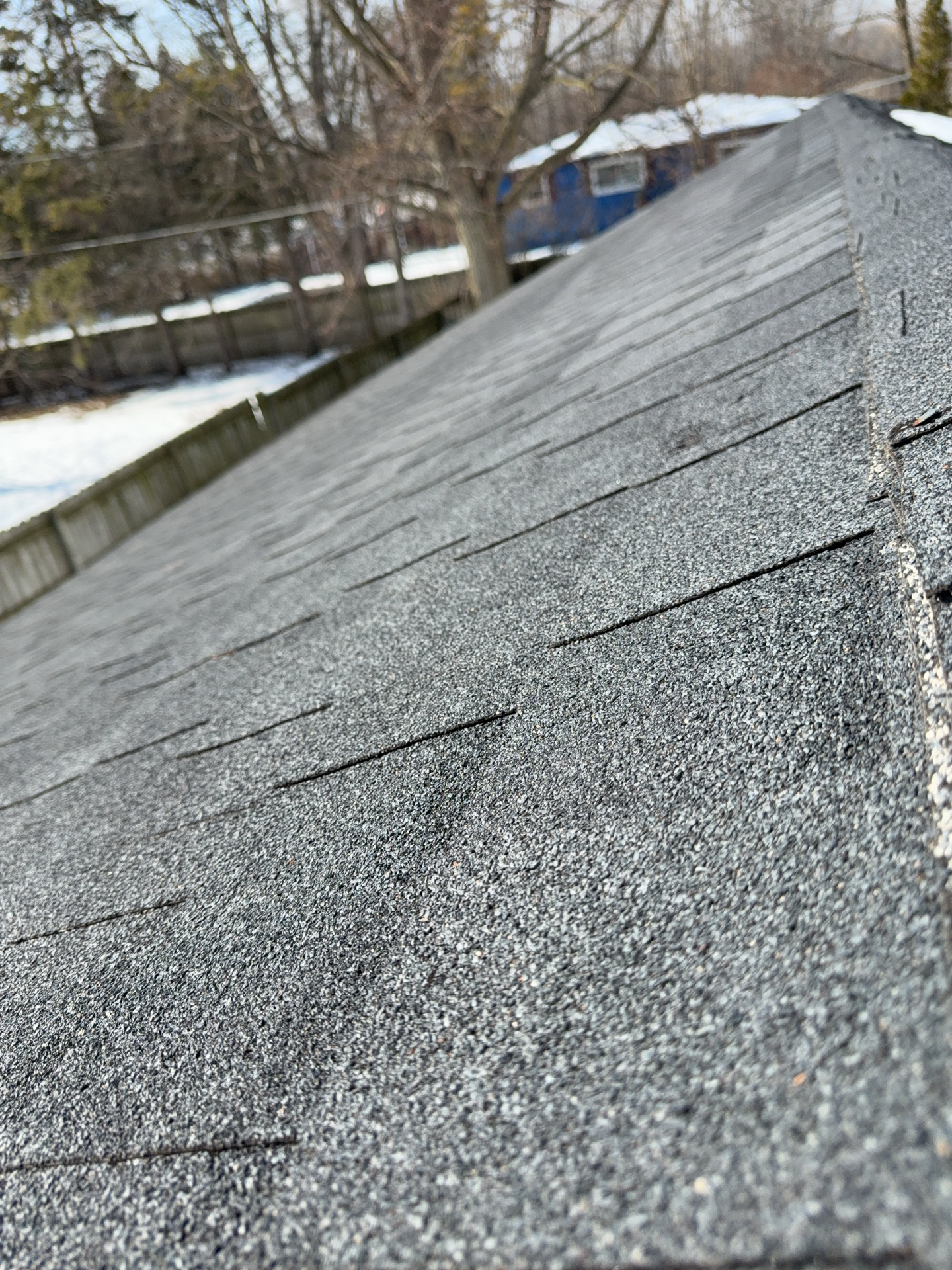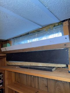 A cracked rafter was observed on the South roof plane, with visible signs of separation. Additionally, the roof framing lacked recommended collar ties that provide supplemental structural support. The presence of two layers of roofing materials, combined with seasonal snow loading, may increase structural demands on the framing and contribute to the need for additional stabilization.