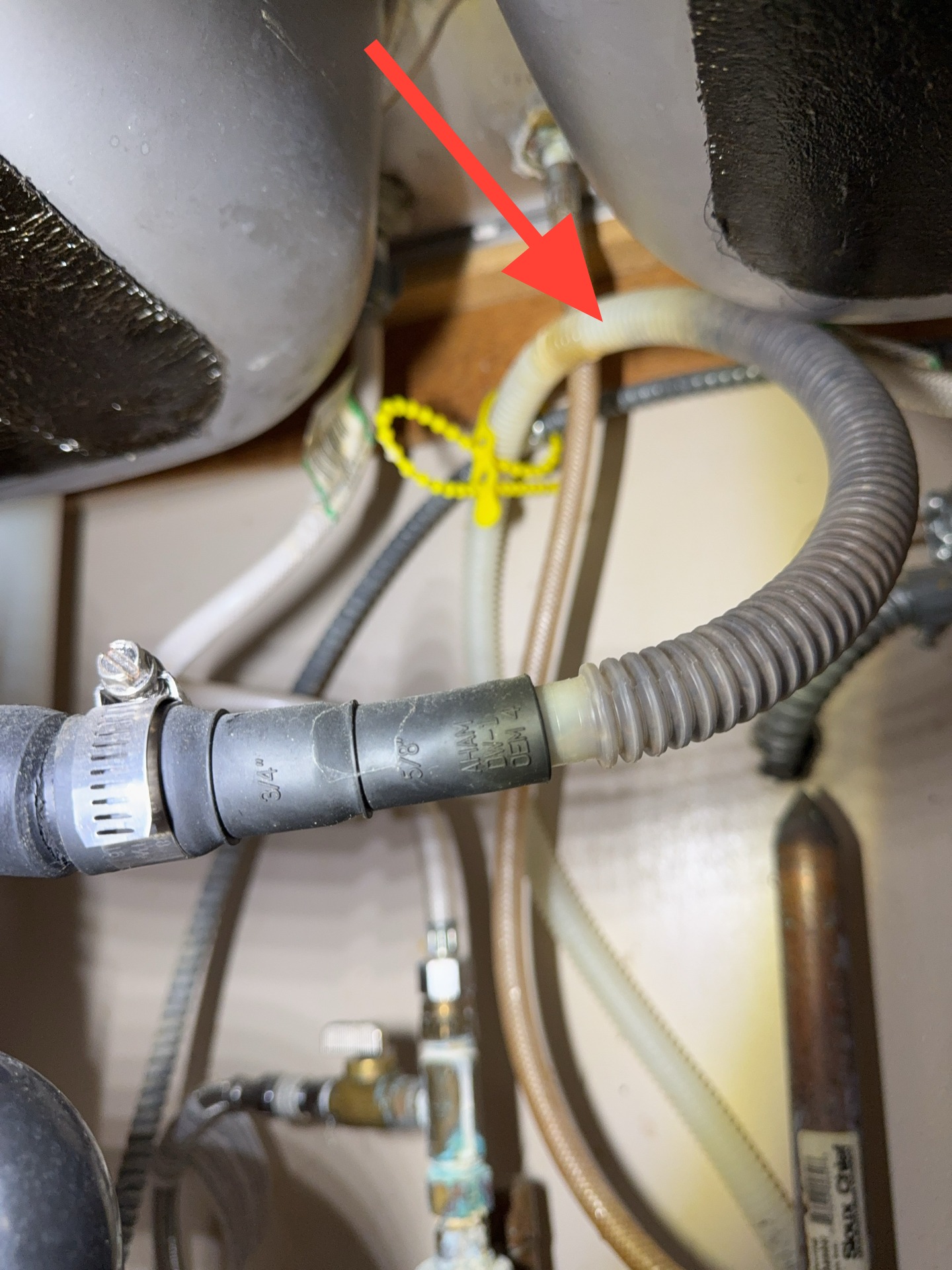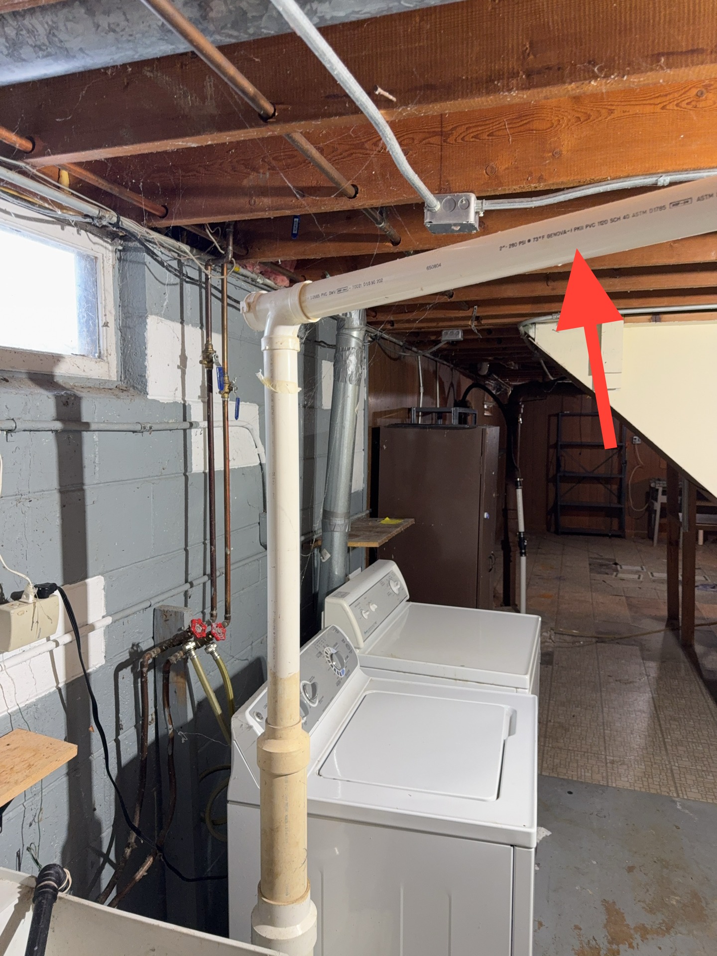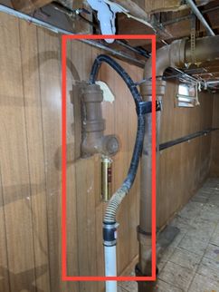 Because the discharge location and configuration of this piping are unknown, its compliance with current installation standards could not be confirmed. Recommend further evaluation by a qualified plumbing contractor to determine the discharge path and to make any necessary repairs or modifications to align with modern installation guidelines and best practices.