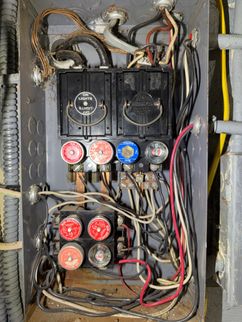 Older style fuses were in use that have become obsolete in the electrical industry. While this style is still available, they do not have modern safety features and some home insurance agencies have safety concerns about this style. Additionally, several double taps were evident creating a safety concern, recommend a licensed electrician evaluate to determine the best upgrading options.
