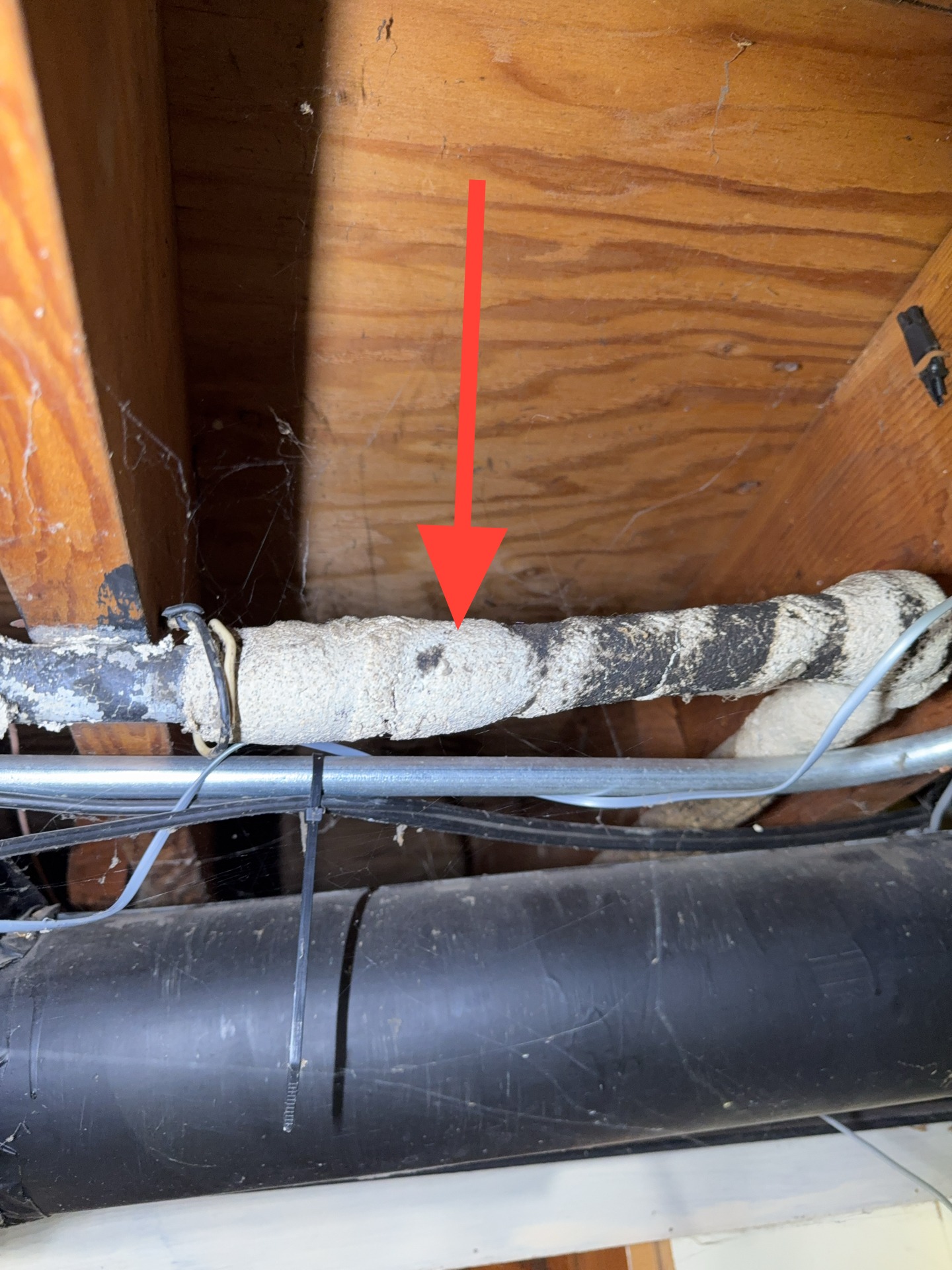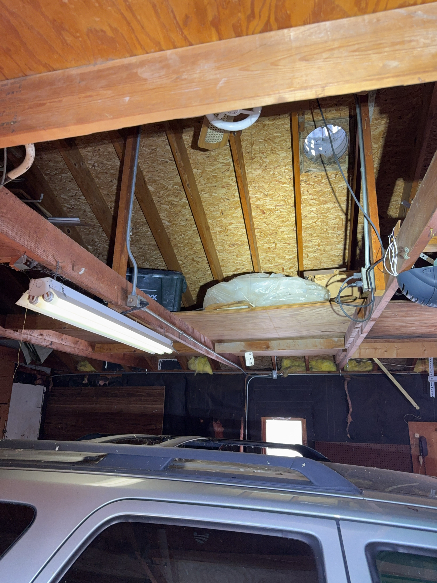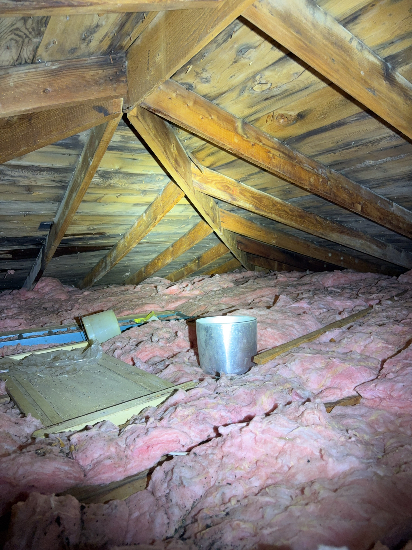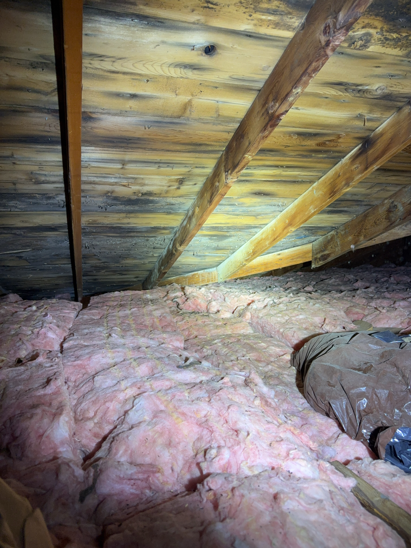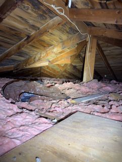 Multiple conditions were observed in the attic that may involve overlapping repairs by different trades. Coordination of repairs is likely necessary to address the issues effectively and prevent recurrence.