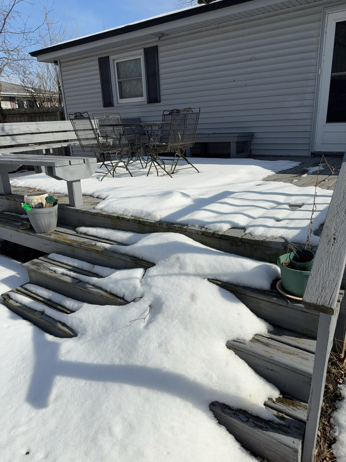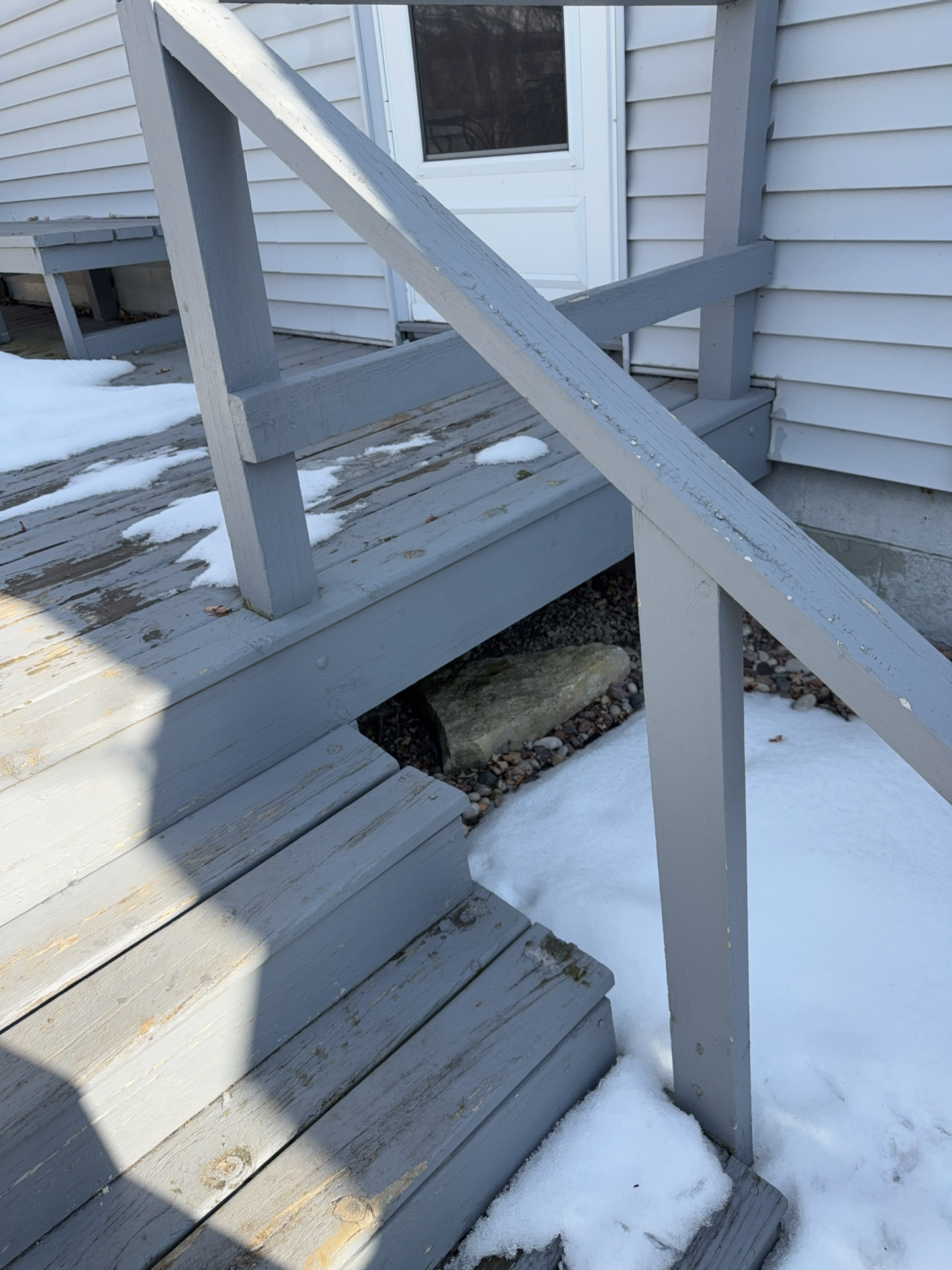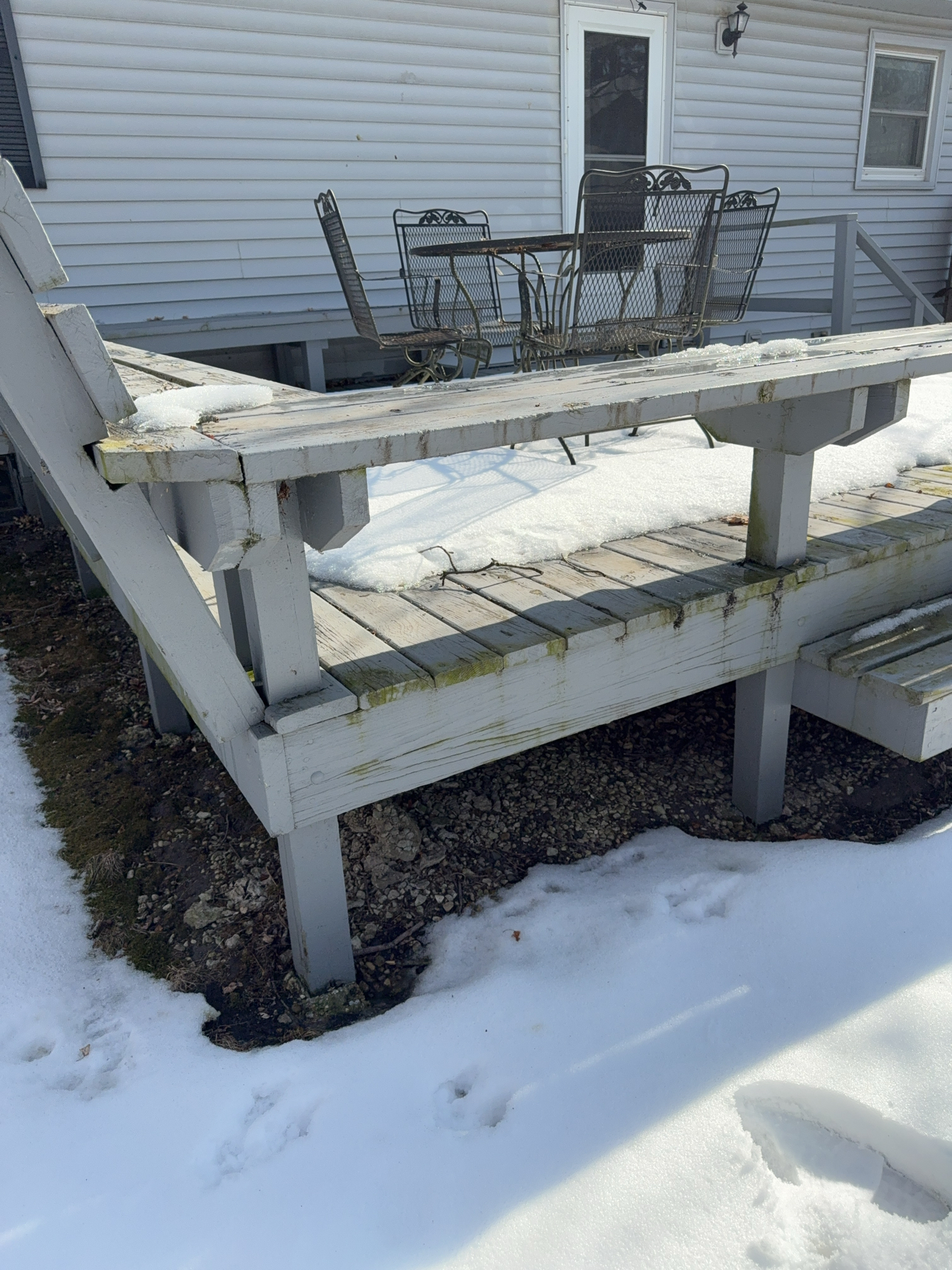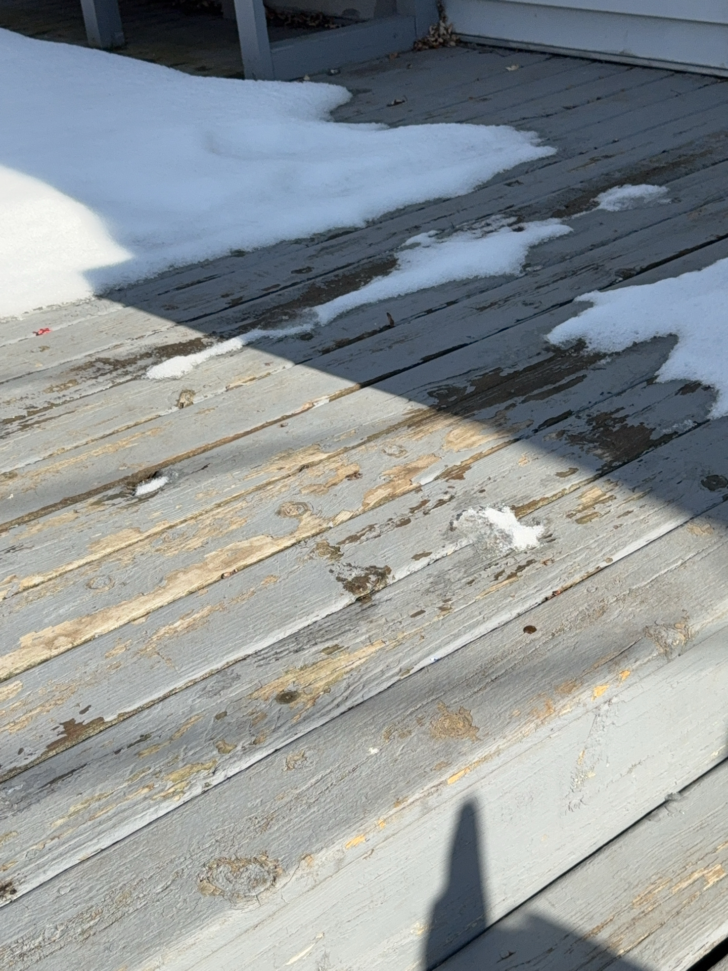 Deck appeared to be showing signs of natural weathering and possible hidden water damage, a professional cleaning and sealing against weather is recommended to help prolong the life of the materials.