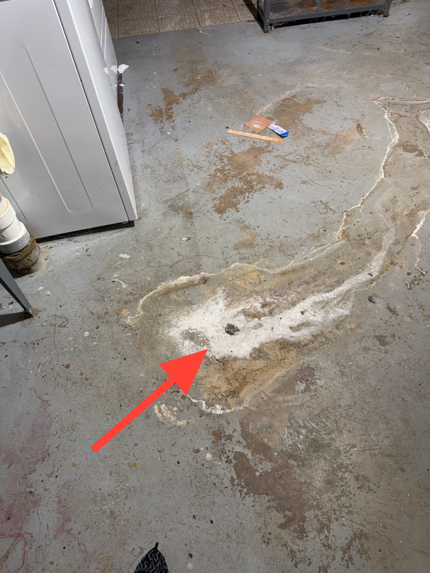 The sump pump discharge pipe was observed connected to an unidentified underground cast iron pipe penetrating the west foundation wall and extending toward the rear yard. The termination point of this pipe could not be determined at the time of inspection.