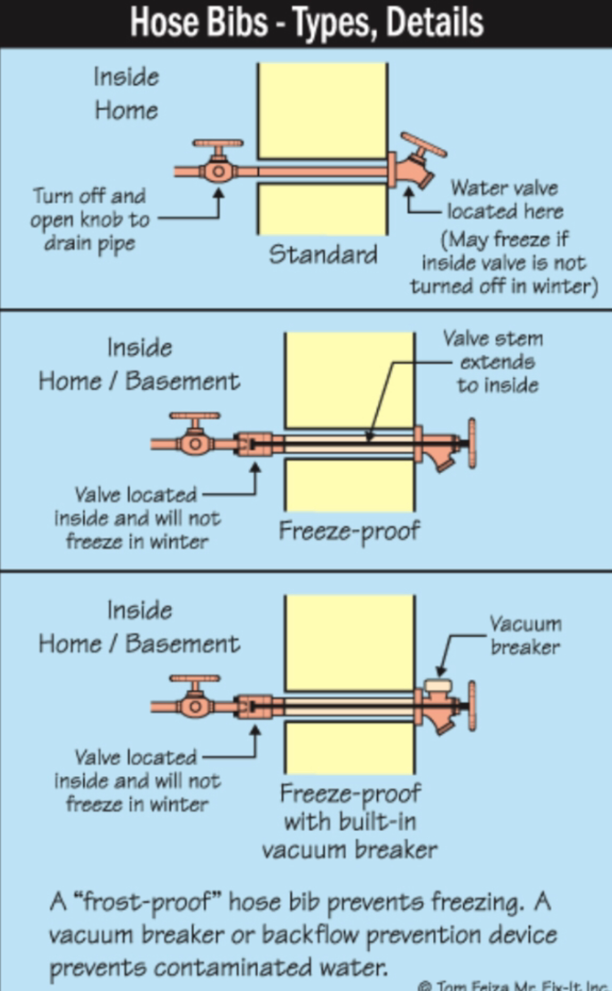 To protect your home during cold weather, it’s important to winterize your outdoor hose bibs (spigots). The best type to install is a frost-proof hose bib, which helps prevent freezing—but keep in mind, frost-proof doesn’t mean freeze-proof. In extreme temperatures, even these can fail and cause pipes to burst if hoses are left attached or if water remains in the line. Proper seasonal winterization is key to avoiding costly damage. How to Winterize Your Hose Bib