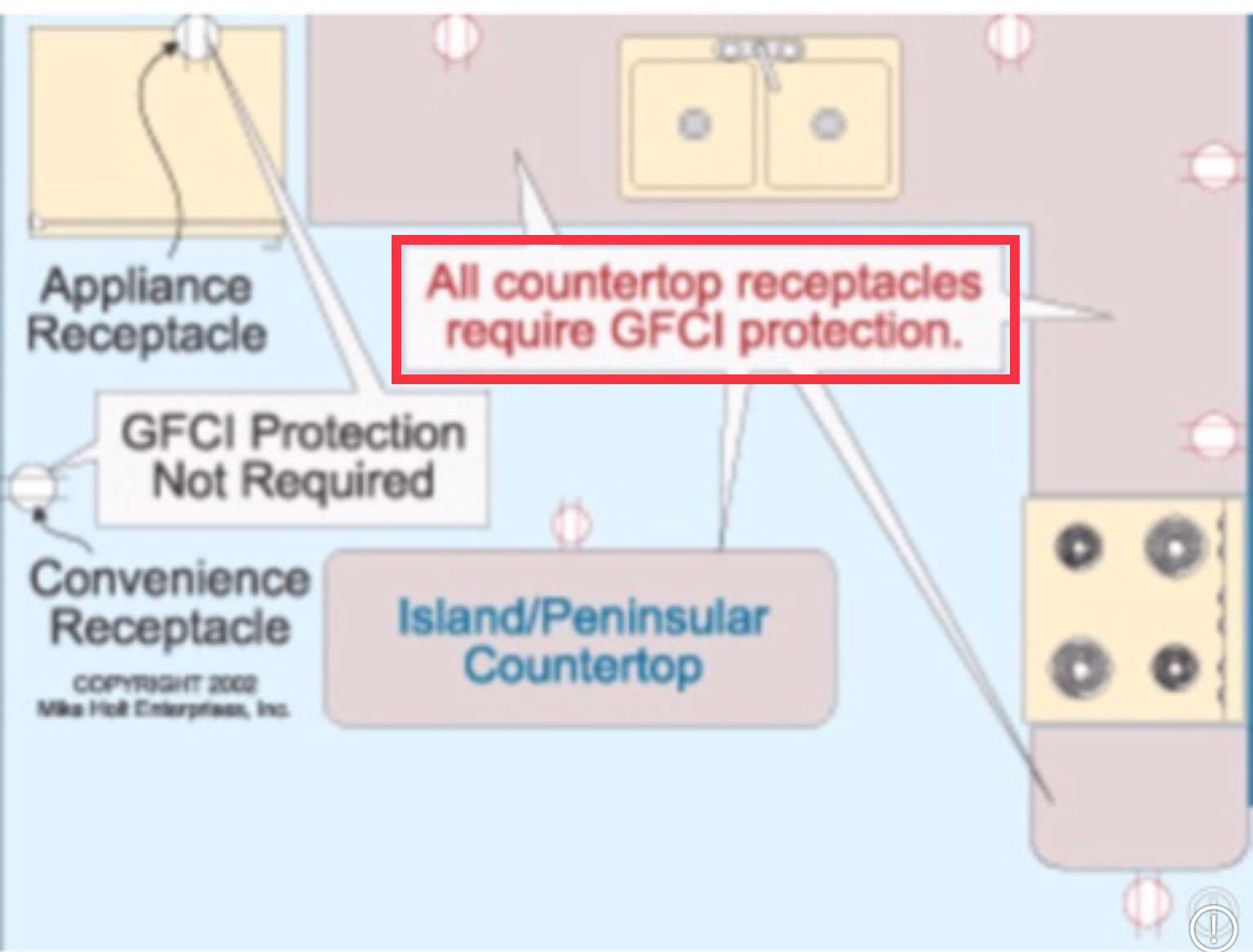 GFCI protection has improved and is now recommended for all outlets above countertop surfaces, recommend a qualified contractor install GFCI outlets in all potentially wet or damp locations.