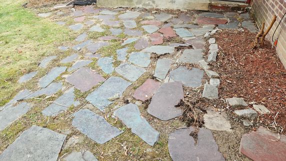 Trip hazards were noted in the walking surfaces. Recommend qualified contractor repair as necessary.