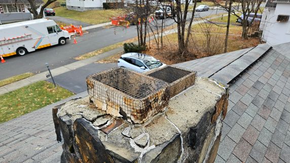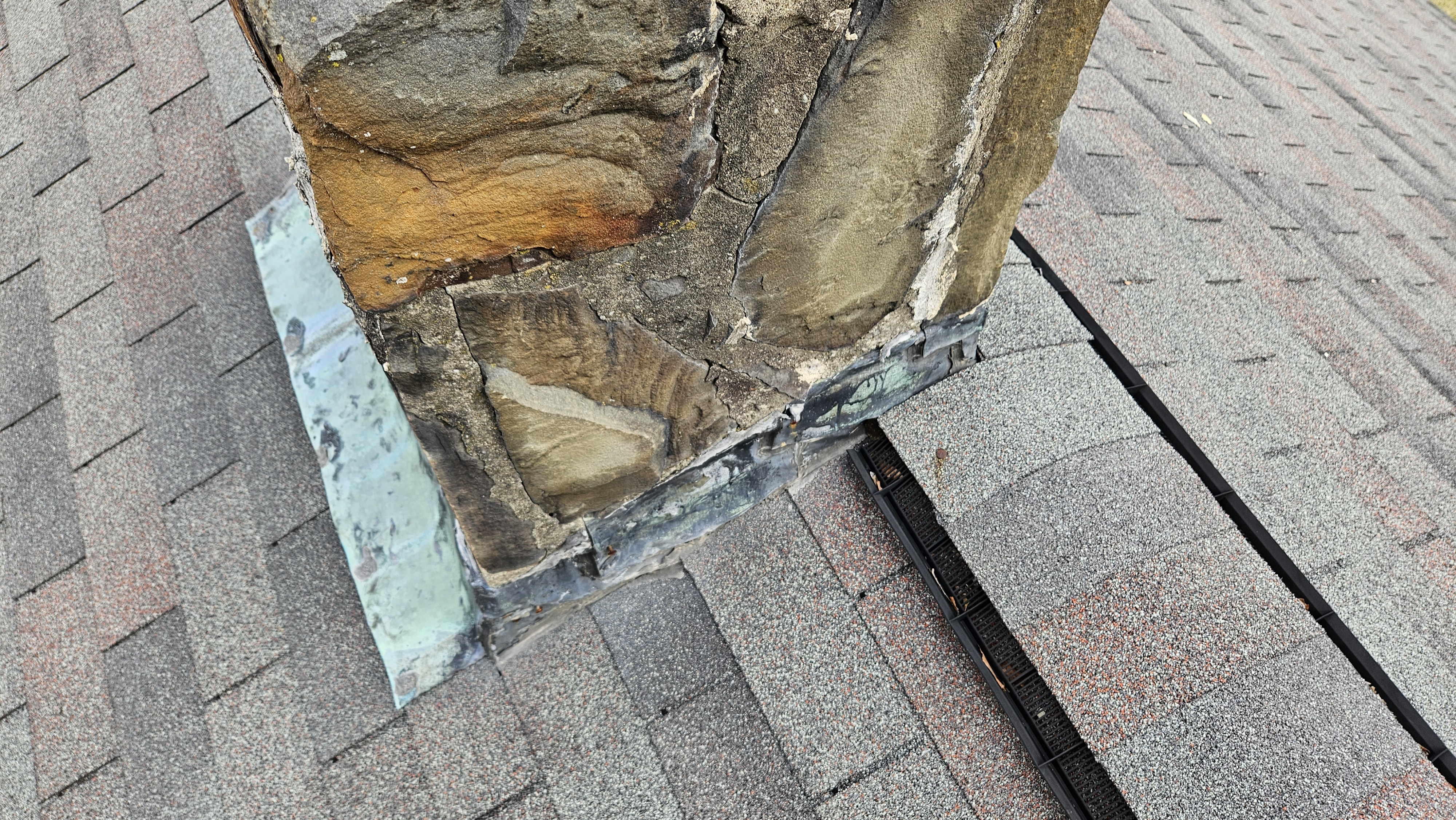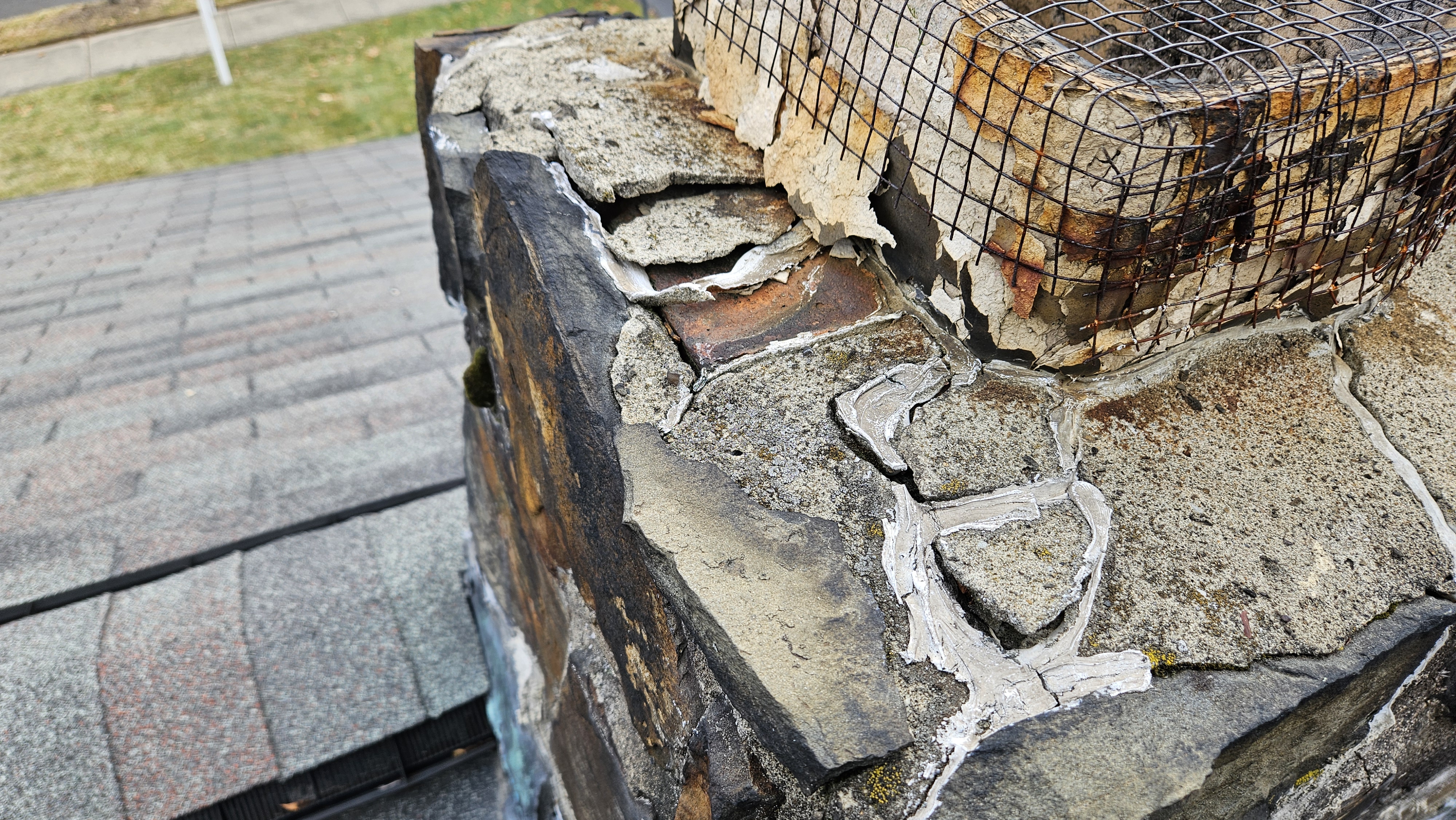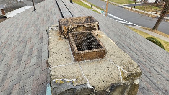 - The chimney cap is just done in a cement wash and the system is lacking a proper concrete cap. This can lead to moisture control problems.