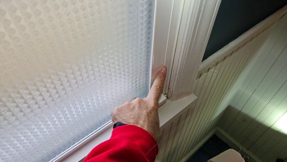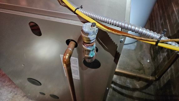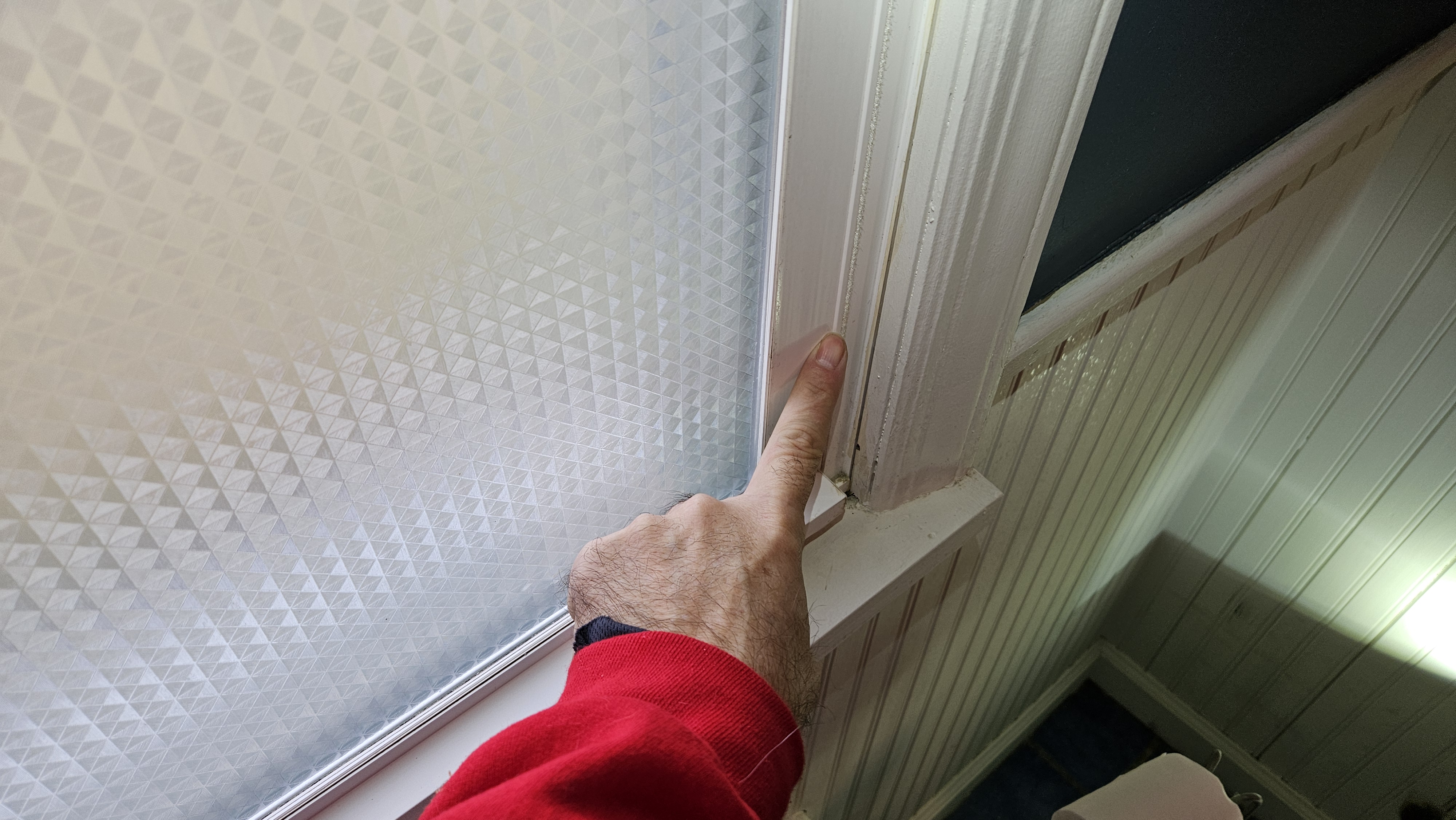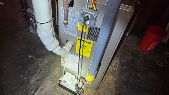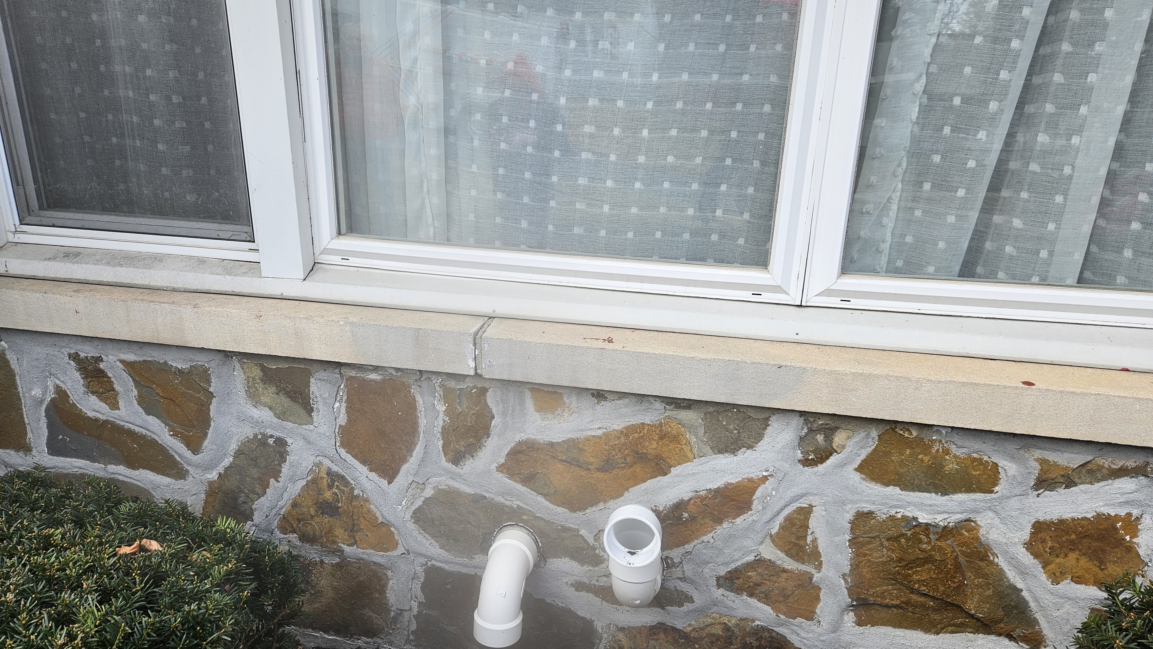 High efficiency vent pipe is too close to bathroom window. This could allow carbon monoxide into dwelling through the open window. Recommend a qualified contractor repair as necessary.