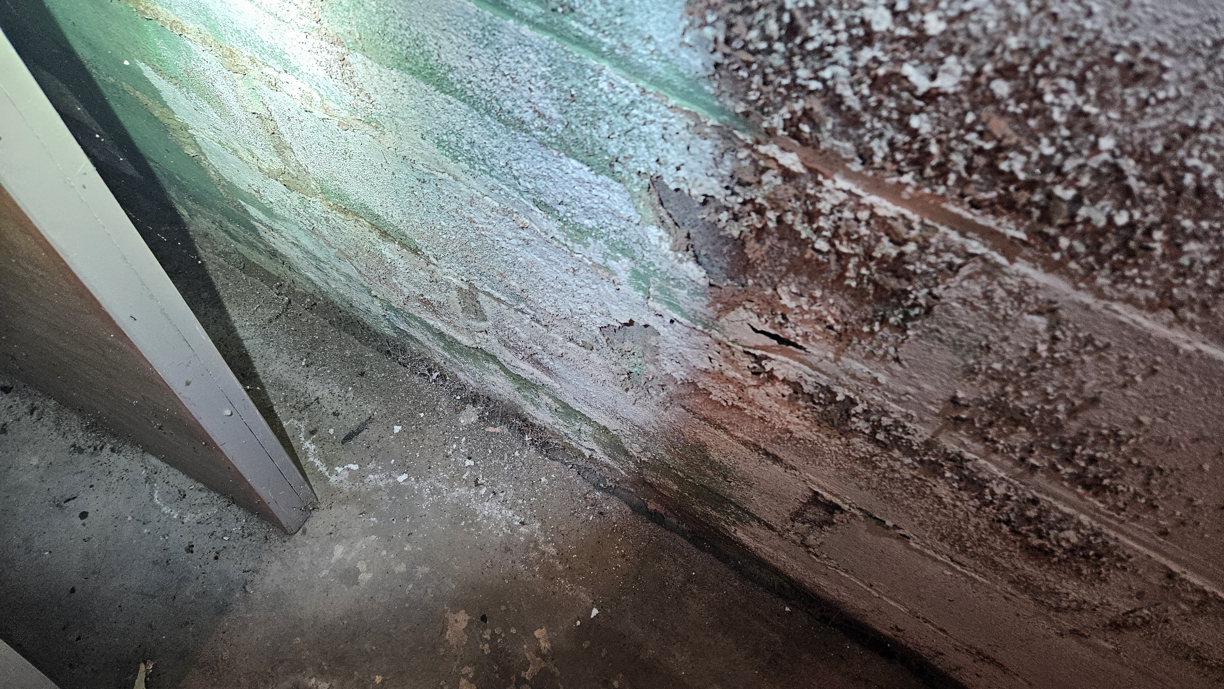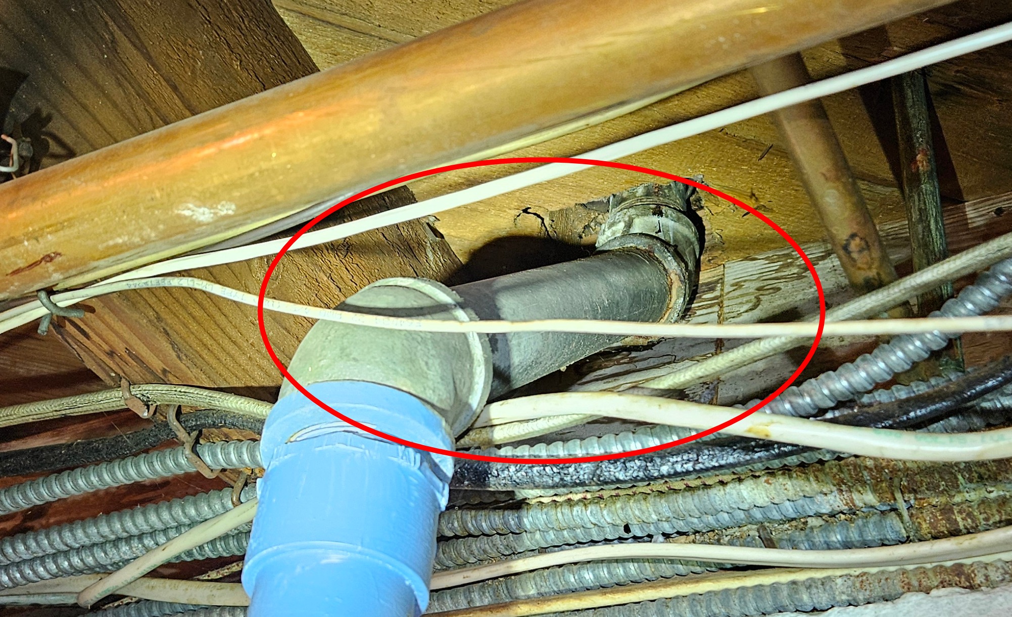 It is recommended to periodically check the subfloor for any indications of active moisture or deterioration, especially around toilets and showers/tubs. If active moisture is detected, it's recommended to contact a qualified plumber for any repairs of the leaks and to replace any damaged areas as needed.
