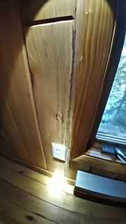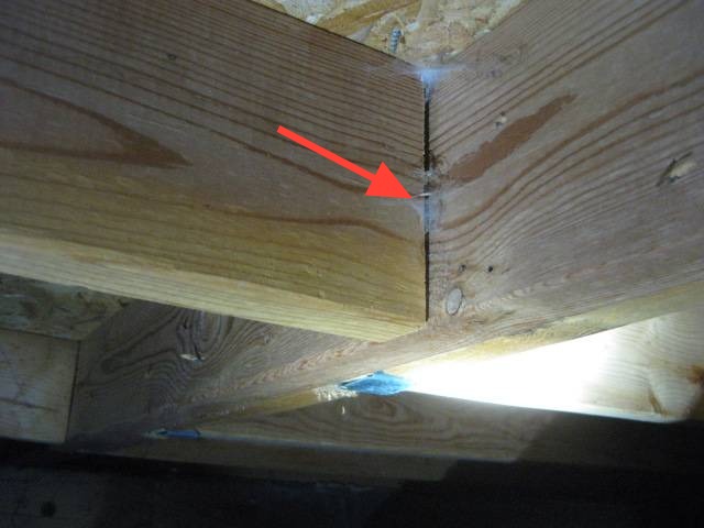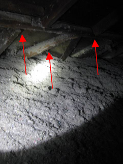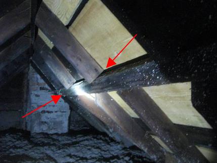 IMPROPERLY CUT RAFTER Multiple improperly cut rafters were noted in the attic space. This condition weakens the roof structure and requires repair. Hire a licensed building contractor to further evaluate and repair the roof structure.