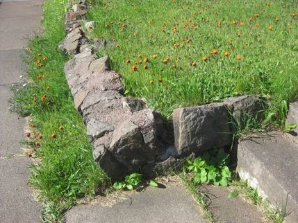 The retaining wall in the front yard is in unreliable condition. Old walls like this can sometimes last for many years in this state, but repairs could be needed at any time. Hydrostatic pressure from heavy rains could cause further movement, which could necessitate retaining wall repair/replacement.