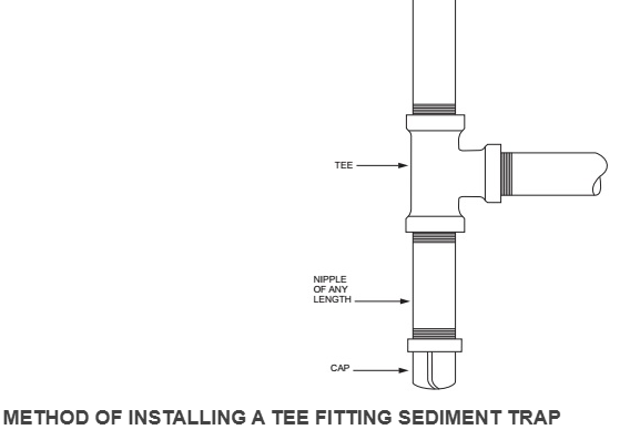 - Sediment trap for gas piping to furnace was installed inline rather than with change of direction at gas piping.
