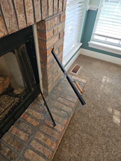 Gas appliance metal chimney flue did not appear to have proper clearance from combustible material. A single wall metal flue generally needs six inches clearance away from combustibles while a double wall metal flue will typically only need one full inch clearance away from combustibles. A competent heating technician should further evaluate and properly correct gas appliance metal flue as needed for safety and function.