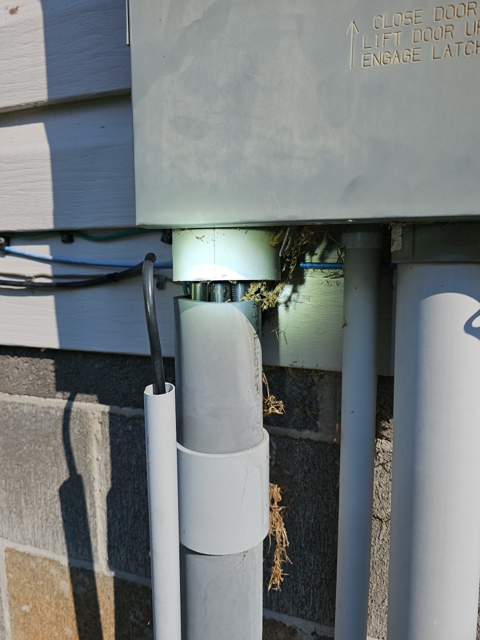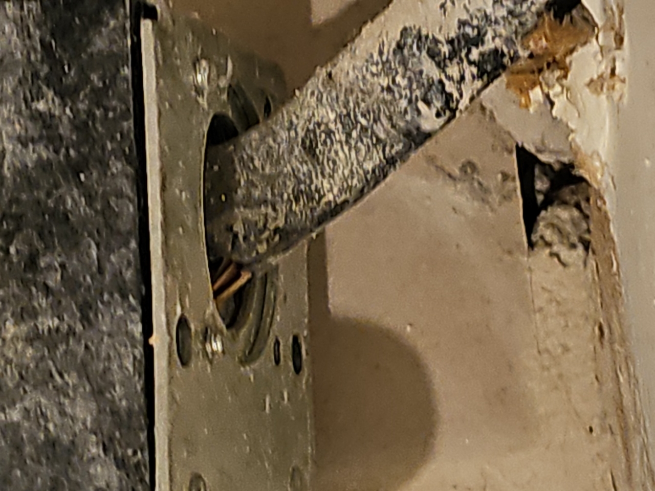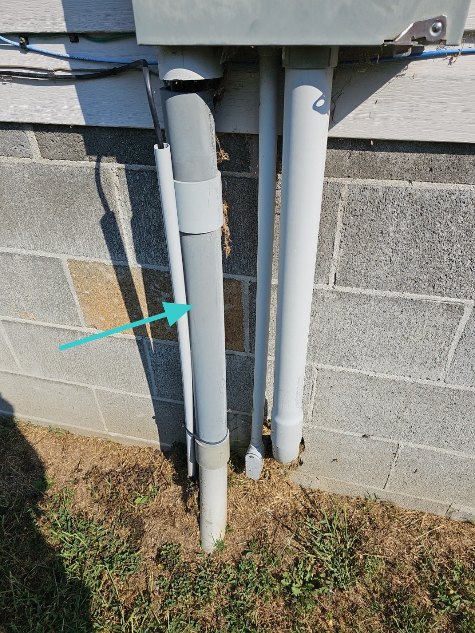 The electrical service conduit was pulled loose from the electric meter enclosure.