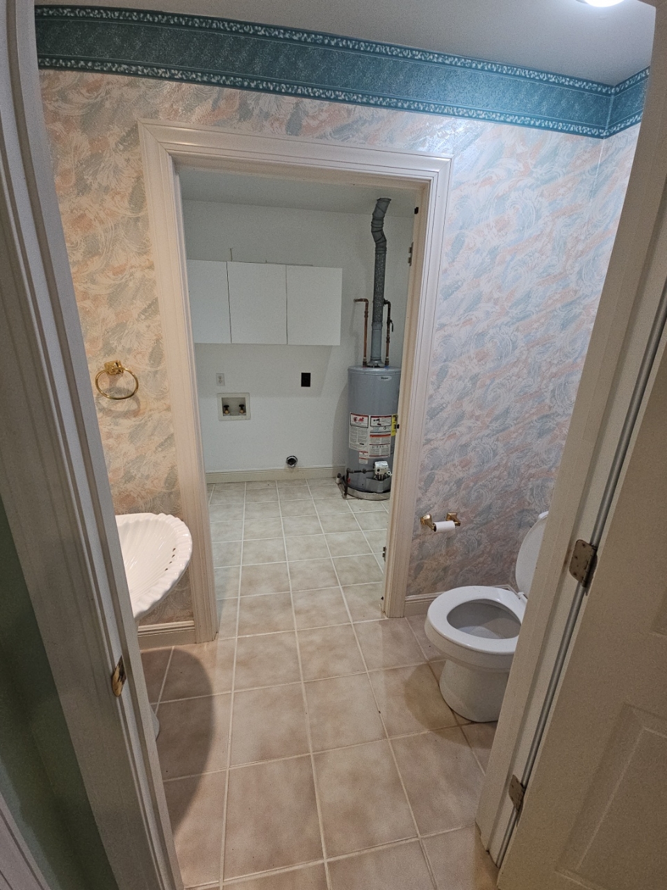 - Natural draft gas water heater should not be installed inside a bathroom or in a small area attached to a bathroom as the water heater may consume or displace the oxygen from the bathroom.