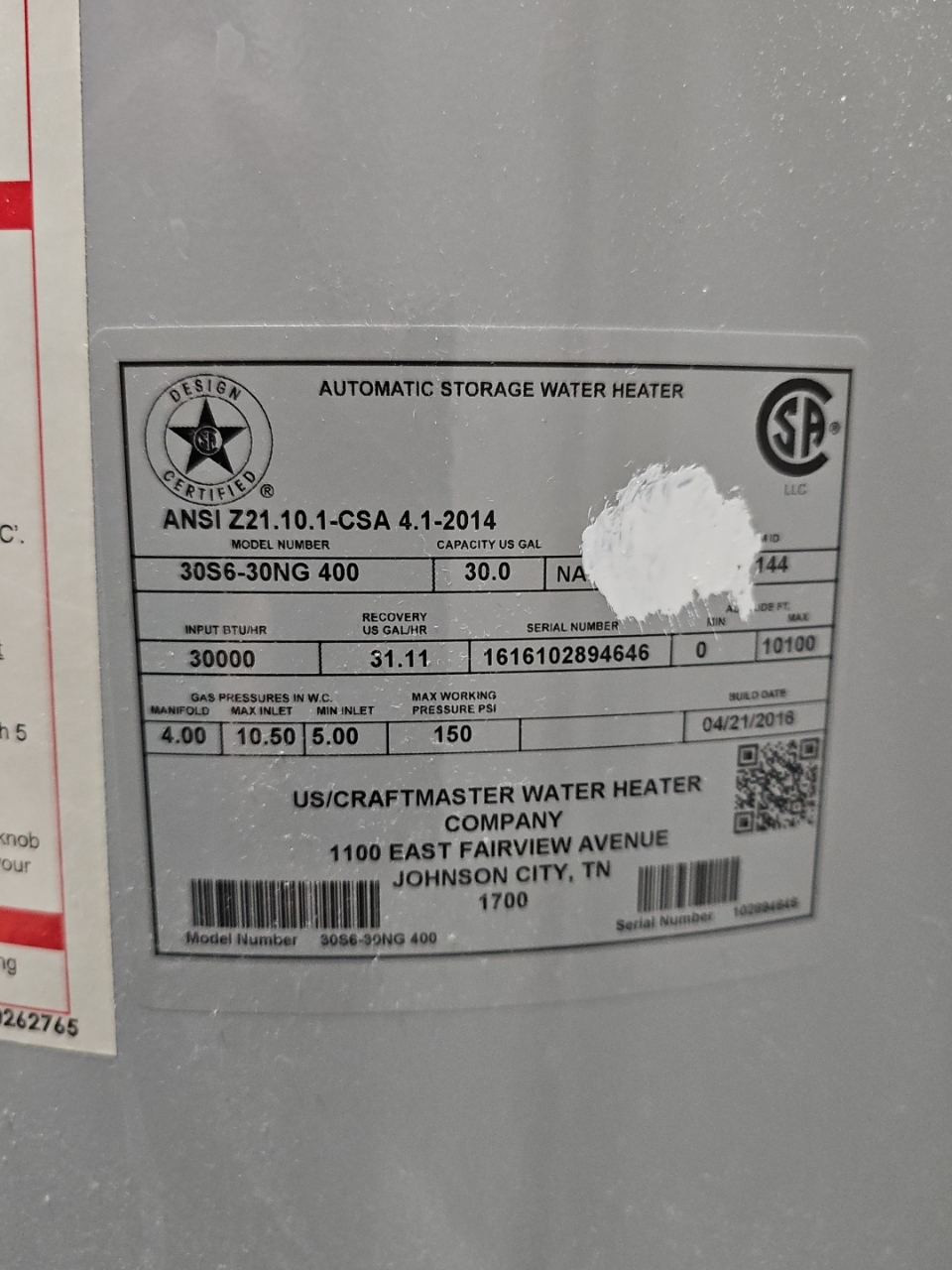 Water heater did not appear to meet manufacturer installation standards for proper installation when inspected.