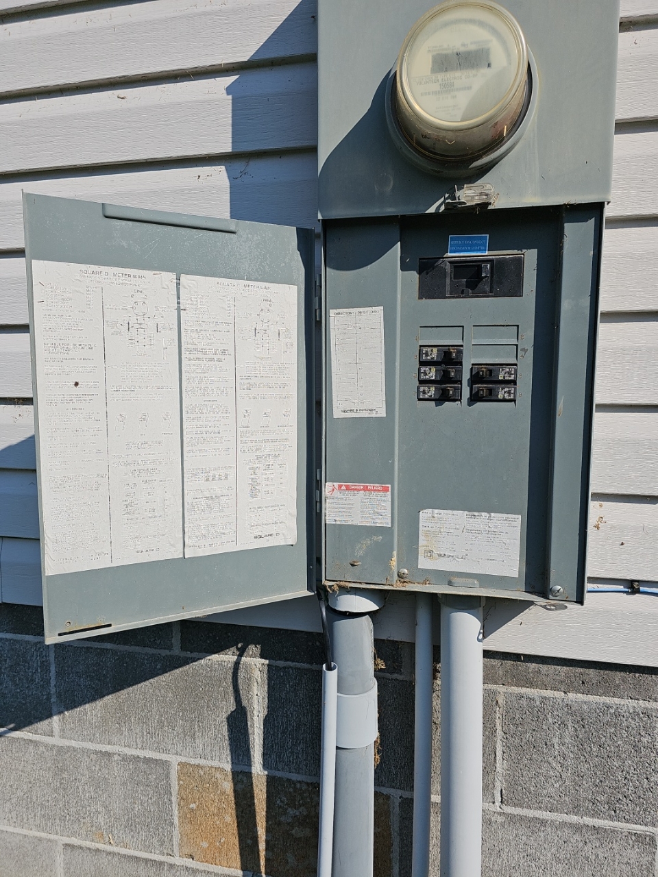 The electrical service conduit at the electric meter was not properly secured to the building.