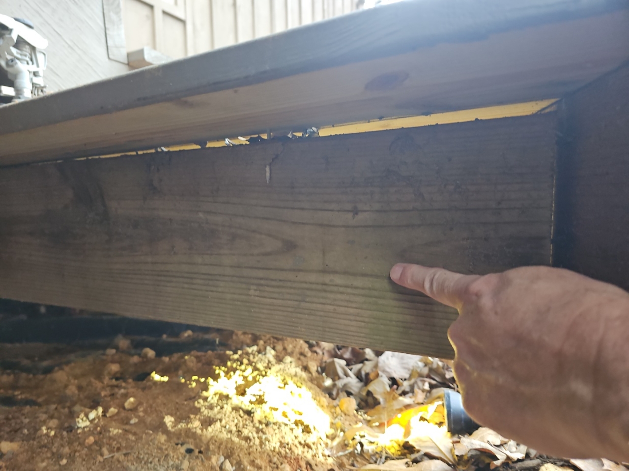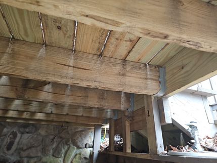 Inspecting decks which are also known as wooden porches.