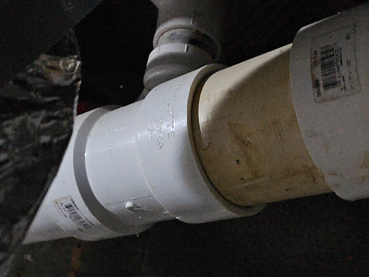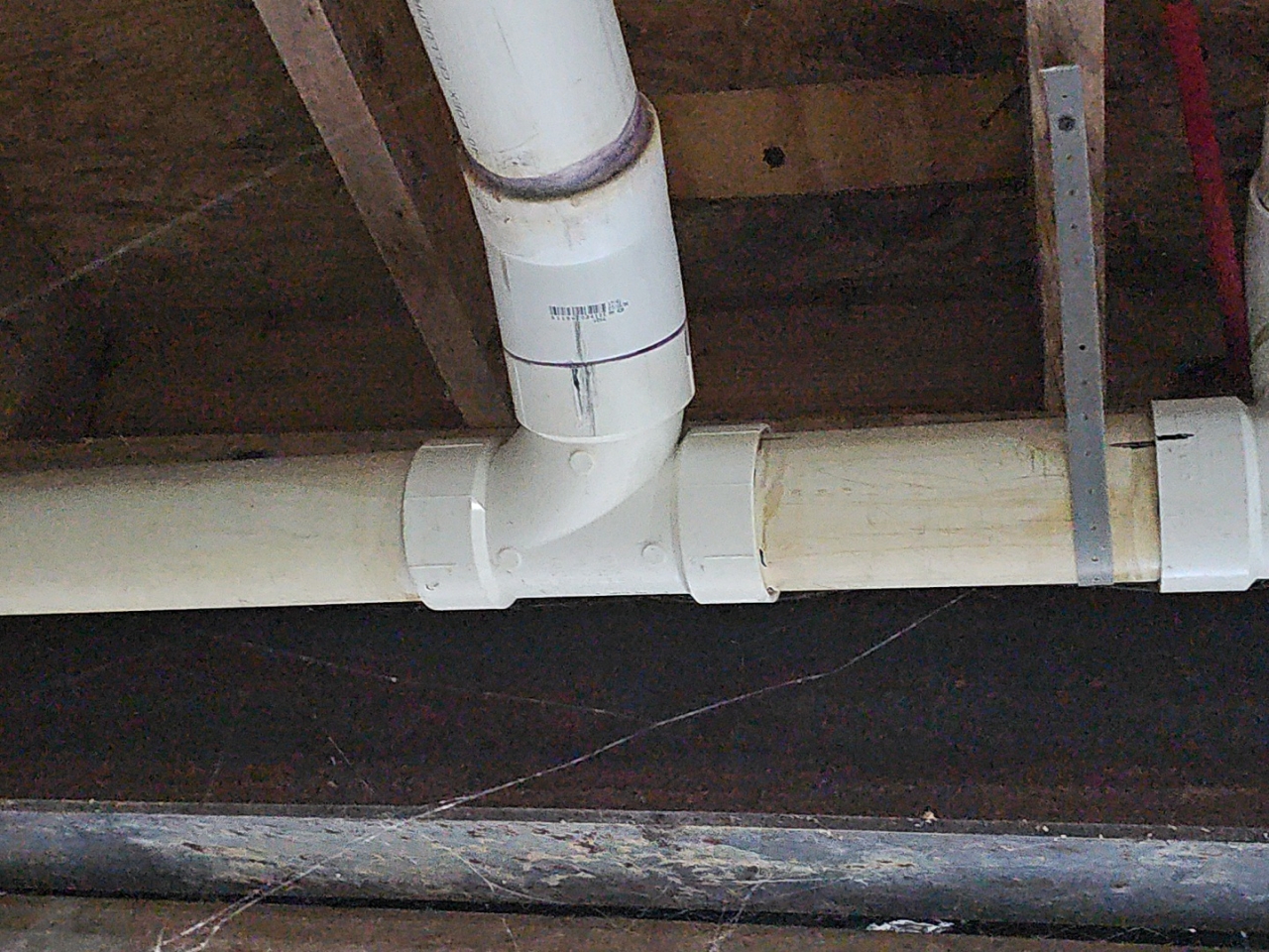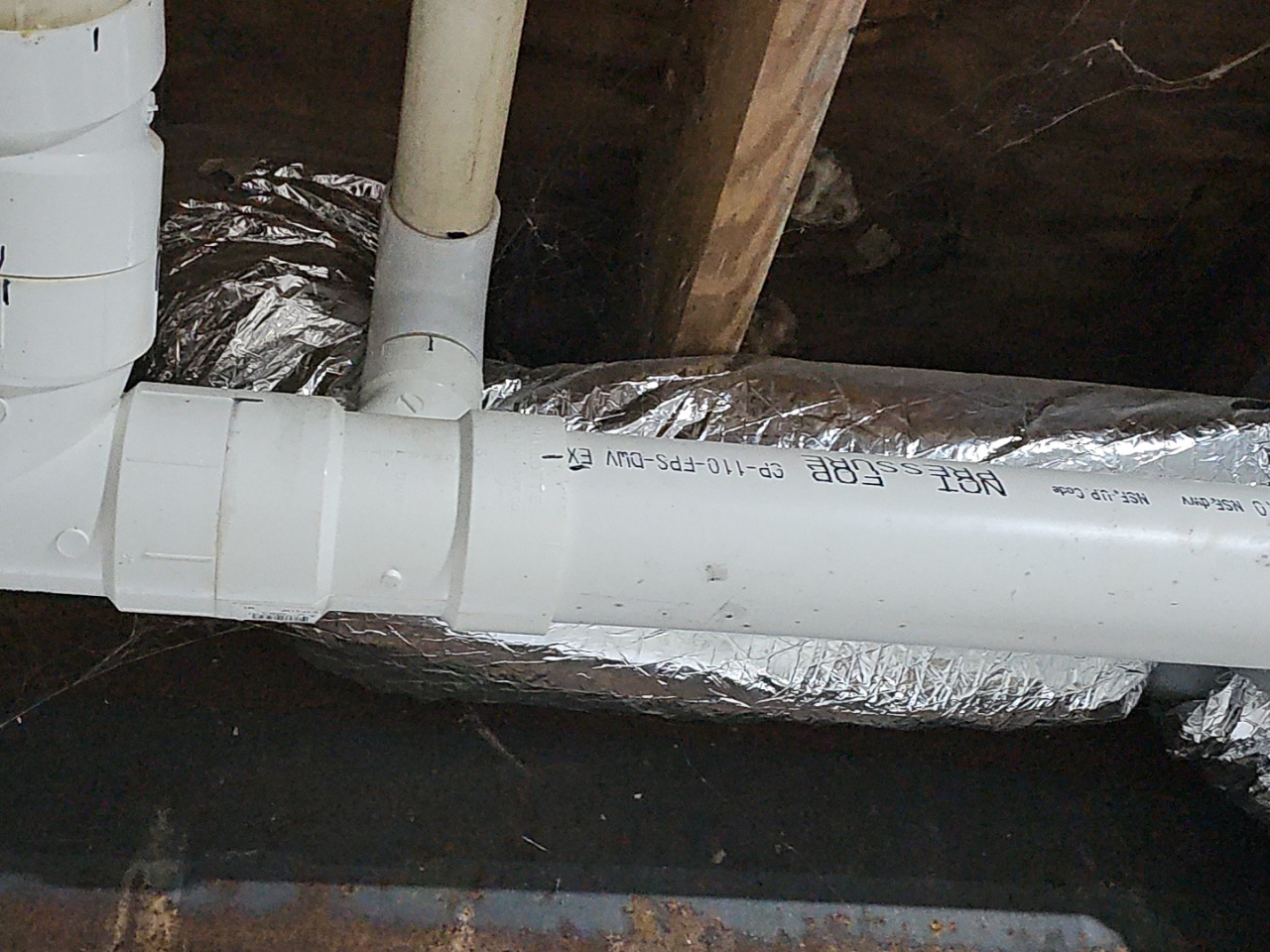 Improper use of a sanitary tee fitting was observed at crawl space.