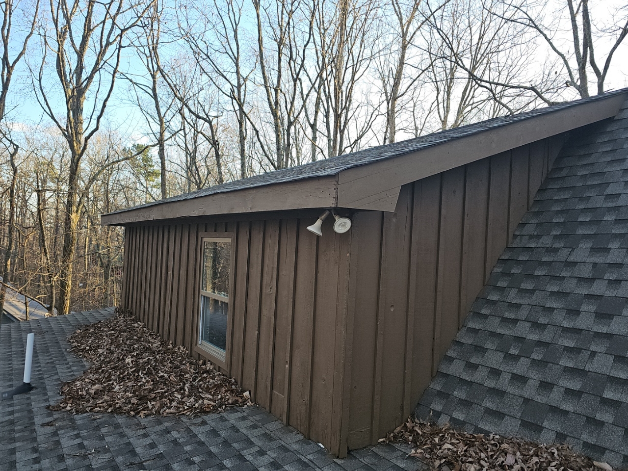 - Low-sloping roof area with a pitch less than 2:12 was observed improperly covered with roofing shingles.