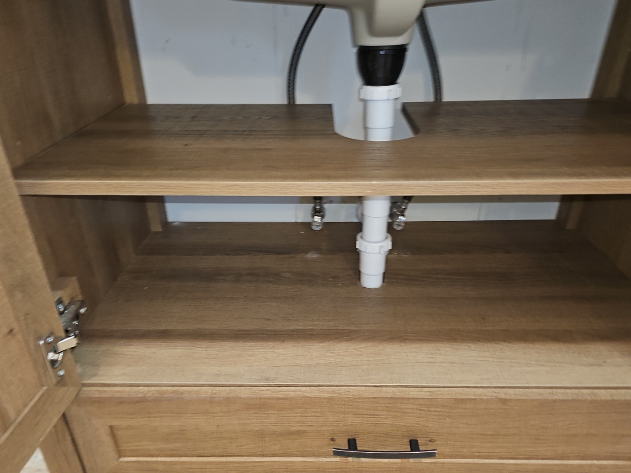 Further evaluation and proper correction of irregular waste drain piping is recommended.