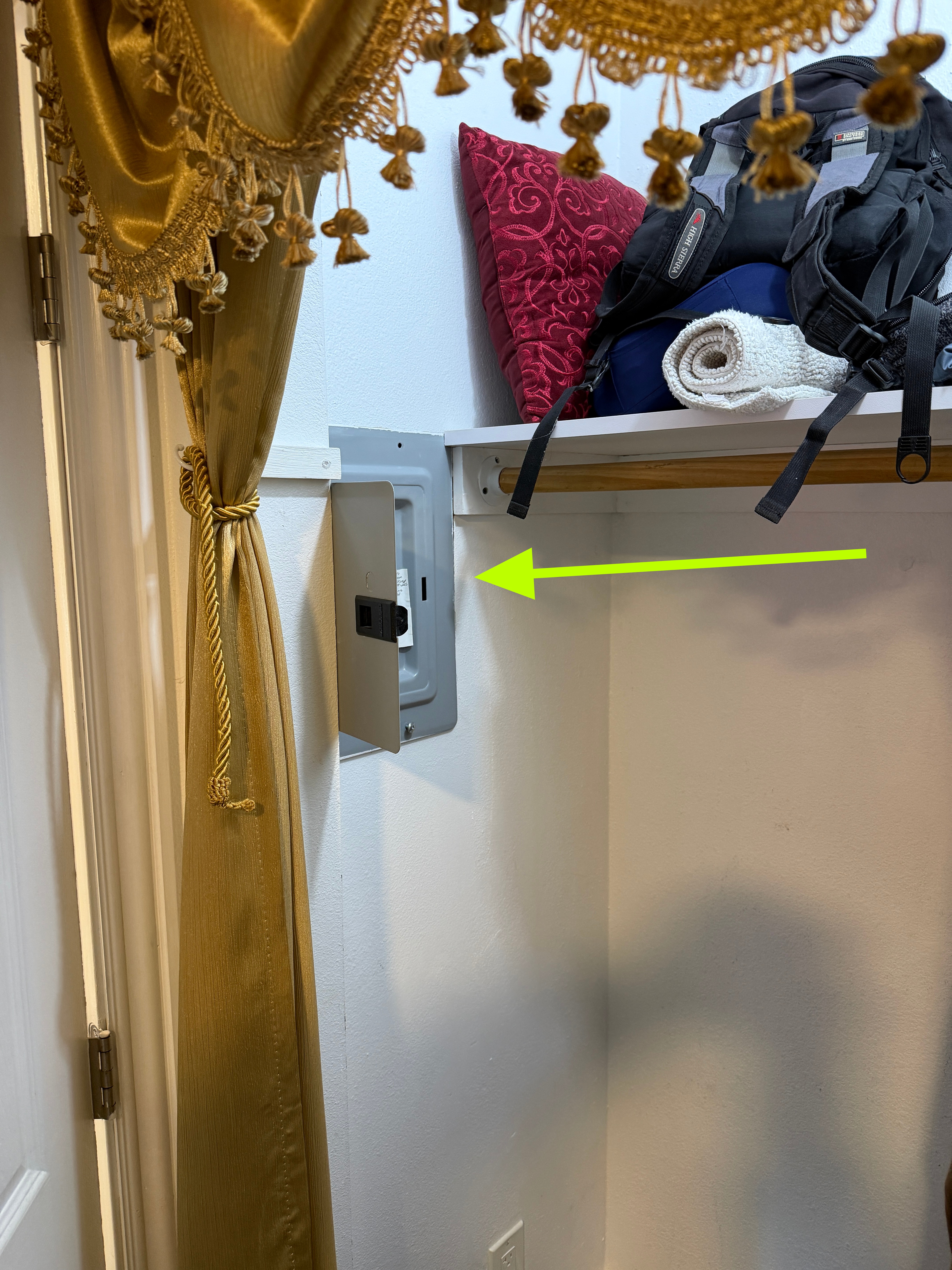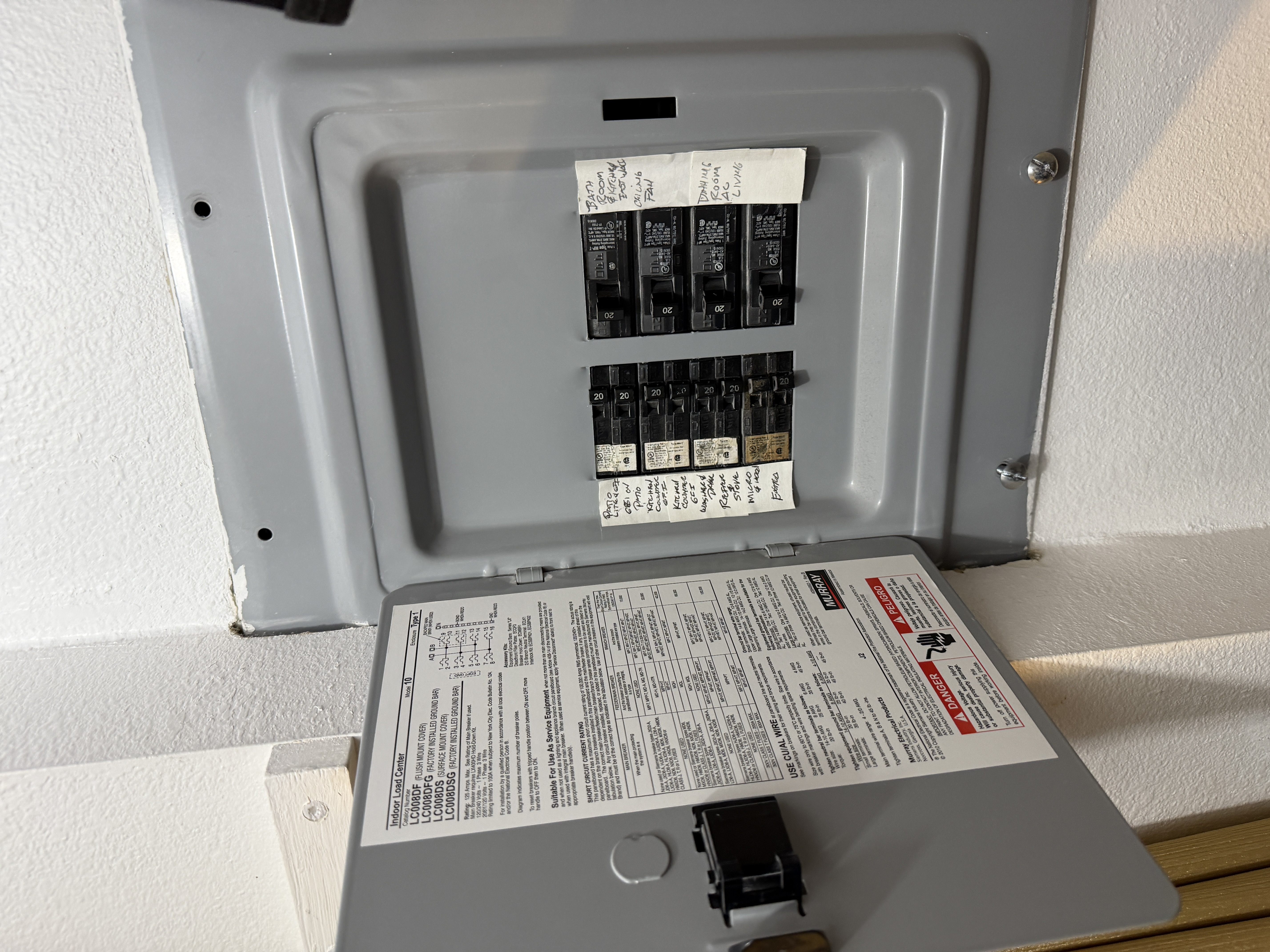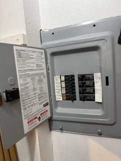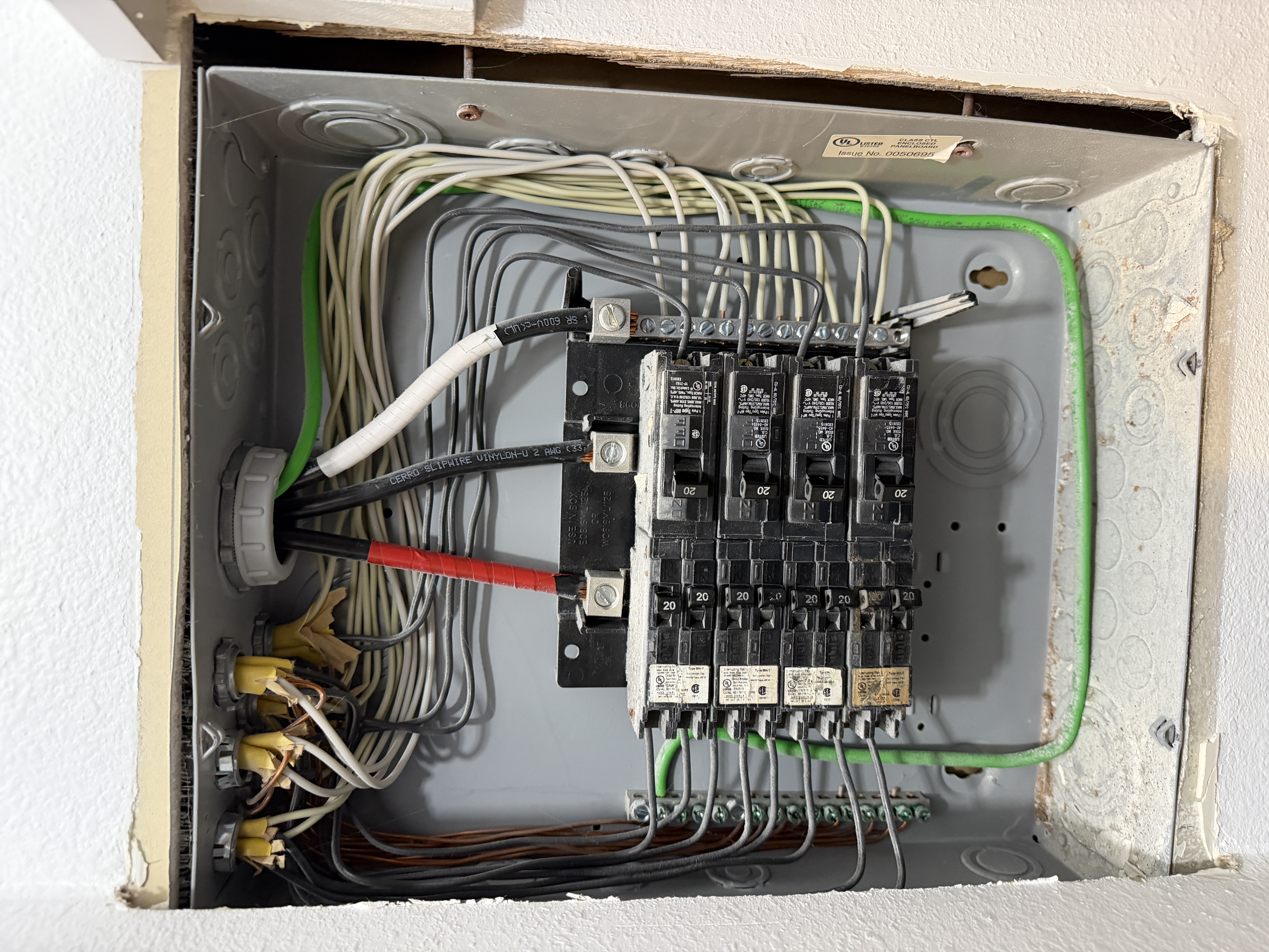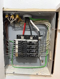 Wiring throughout the inside of the panel is installed correctly. However, the electrical panel is located inside a clothing closet. Relocation is necessary.
