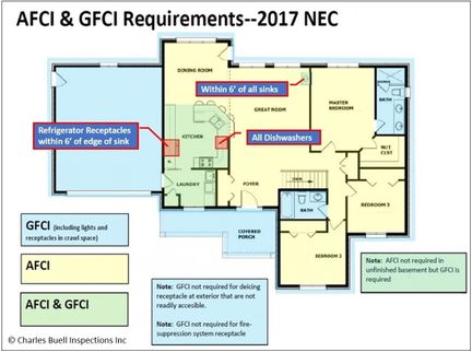 Arc Fault Circuit Interrupter (AFCI) breakers were not observed on all the recommended circuits in the panel. Modern building standards require most living spaces be protected by AFCI breakers which are a fire prevention device. AFCI breakers were on the bedroom circuits, which was the recommendation from 2002 to 2015. However, the current version of the National Electric Code states: "All 120-volt, single phase, 15- and 20-ampere branch circuits supplying outlets or devices installed in dwelling unit kitchens, family rooms, dining rooms, living rooms, parlors, libraries, dens, bedrooms, sunrooms, recreation rooms, closets, hallways, laundry areas, or similar rooms or areas shall be protected." Recommend having a qualified electrician install AFCI breakers where required as a significant safety upgrade for the occupants.