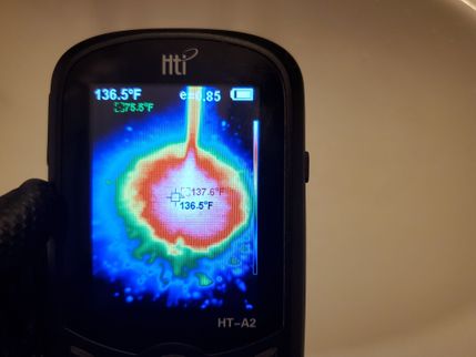 Water temperature was high. The water temperature should be set to approximately 120 degrees Fahrenheit to prevent scalding, extend water heater life, and improve energy efficiency and conservation. The temperature can usually be adjusted by the owner at the water heater.