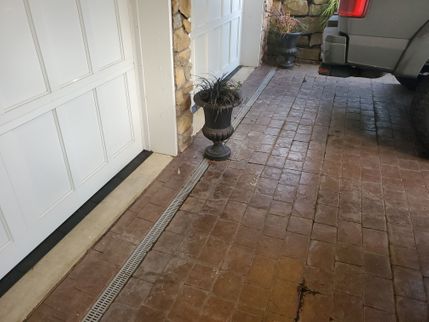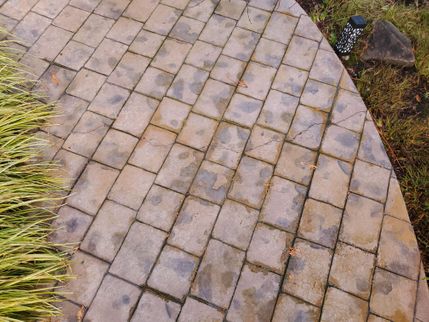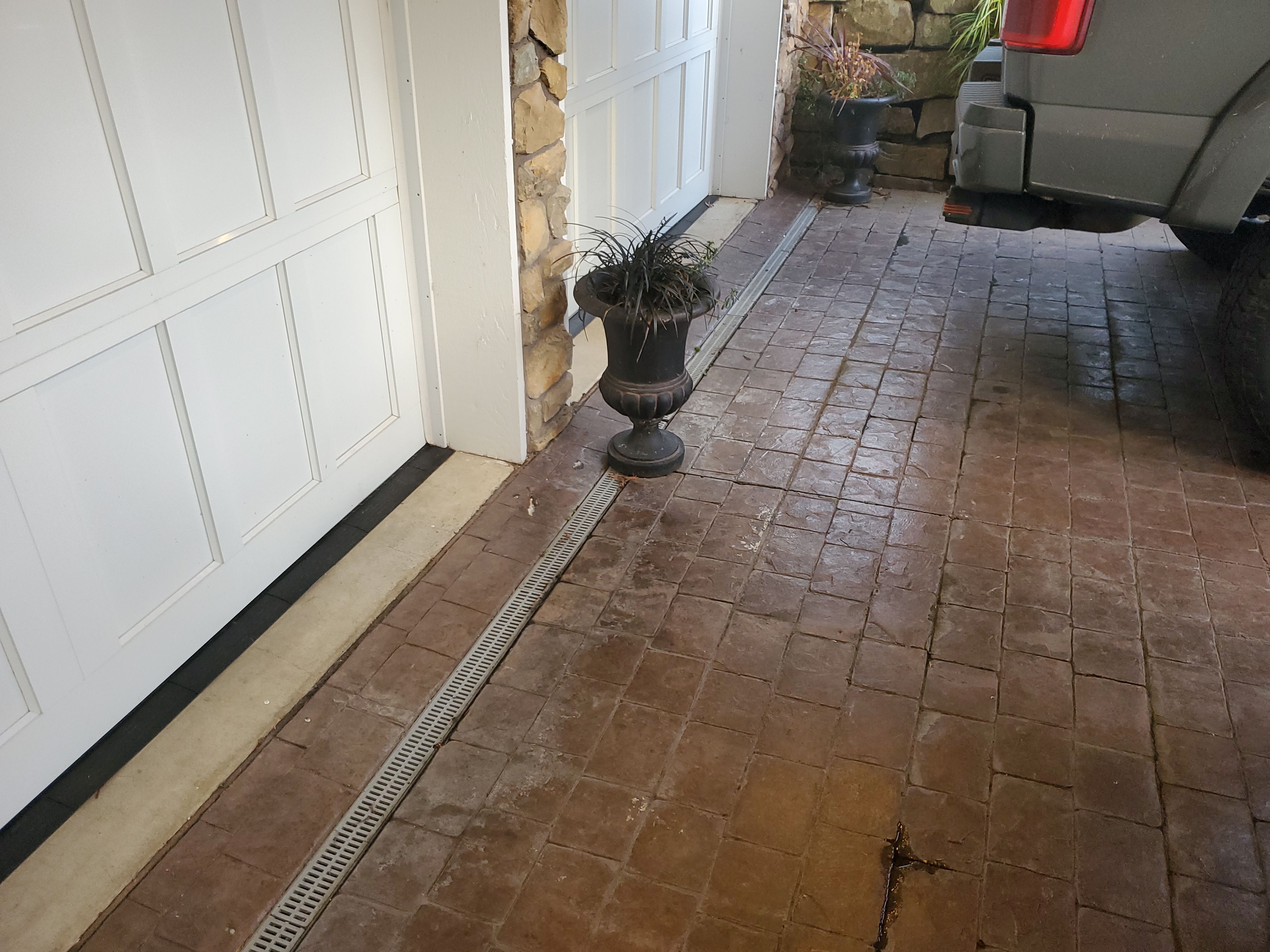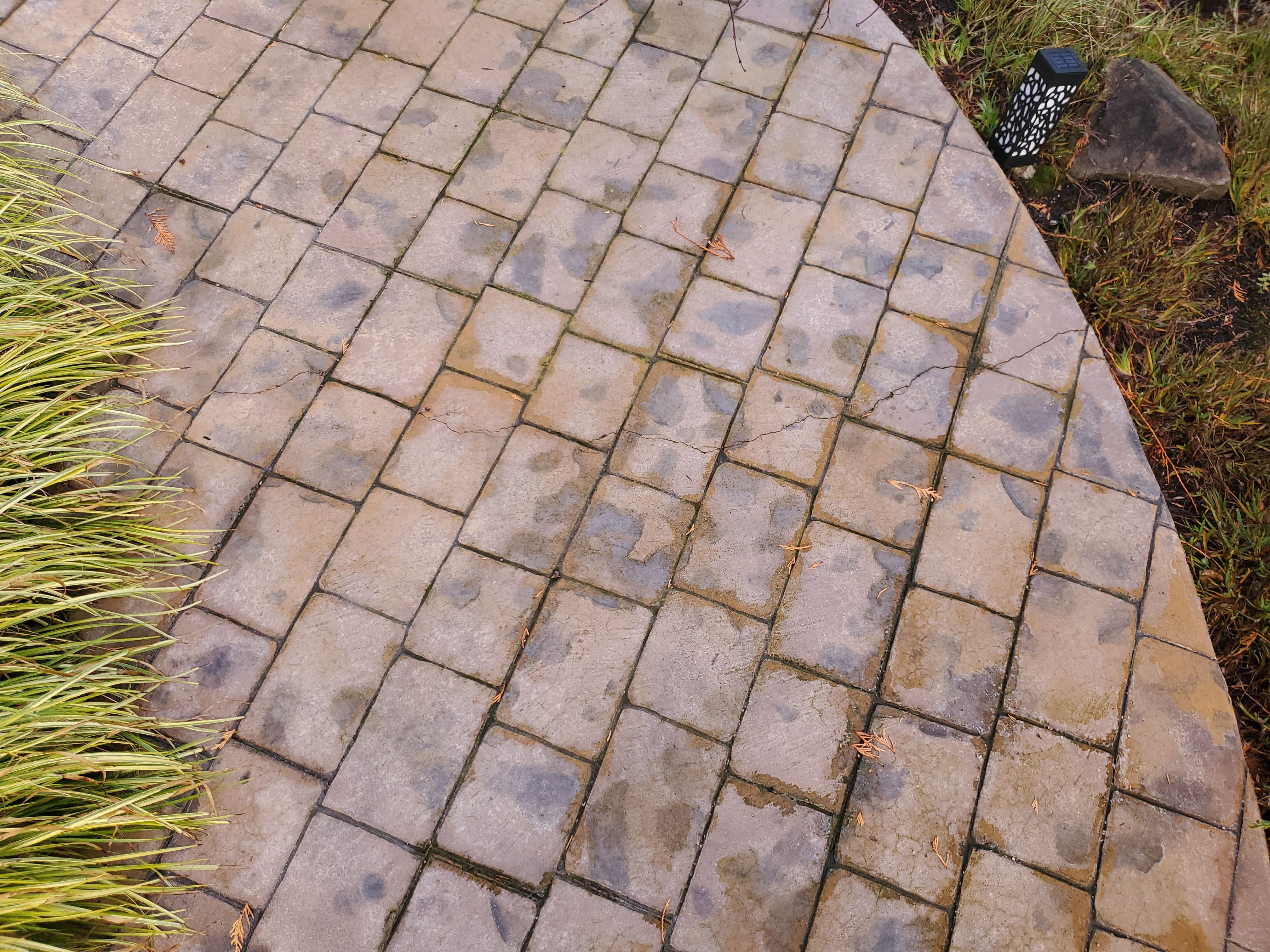 Typical cracks were noted in concrete flatwork. No immediate repair appeared necessary, though water will continue to deteriorate the surface until the concrete is repaired or replaced. Monitor for the development of trip hazards.