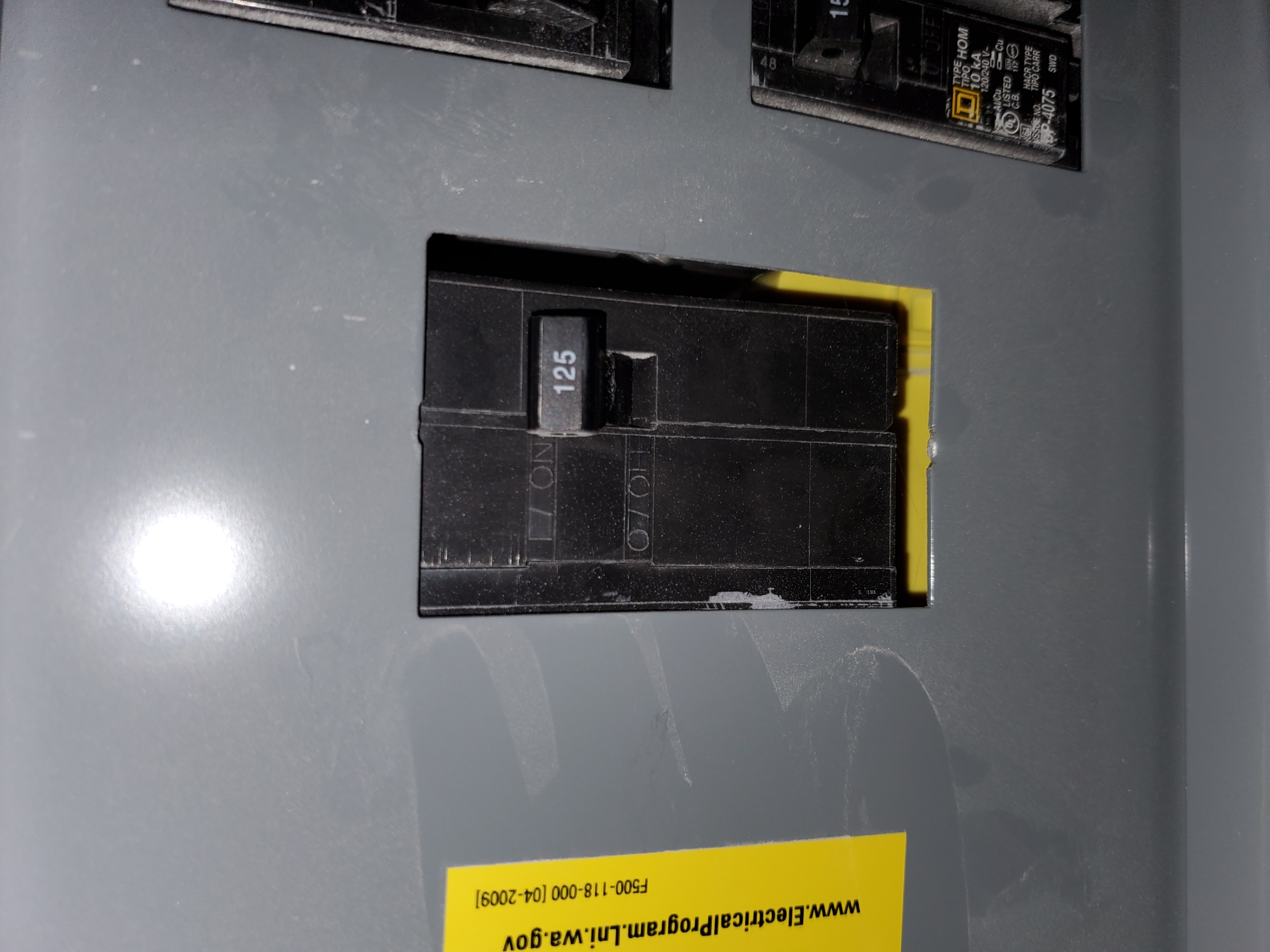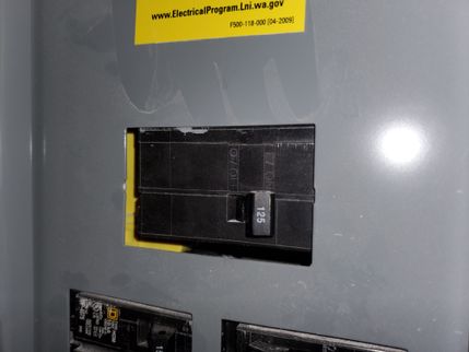 Photos of the electrical panel are provided for context. The main electrical shut-off breaker is highlighted (if the panel is equipped with one.)