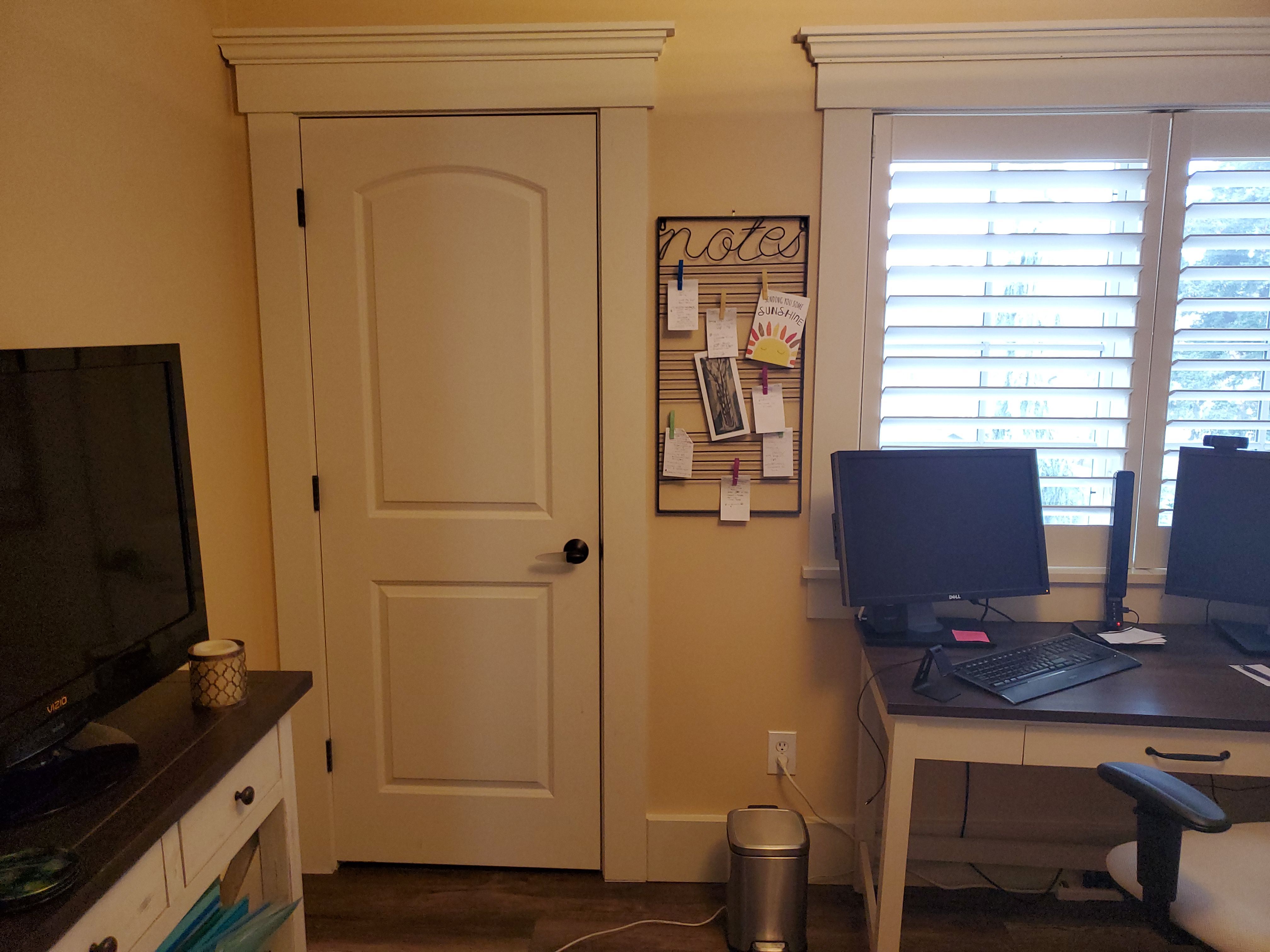 The knob for the second level hall bathroom door did not have a lock. Recommend replacing the knob with a locking model. DIY repair.