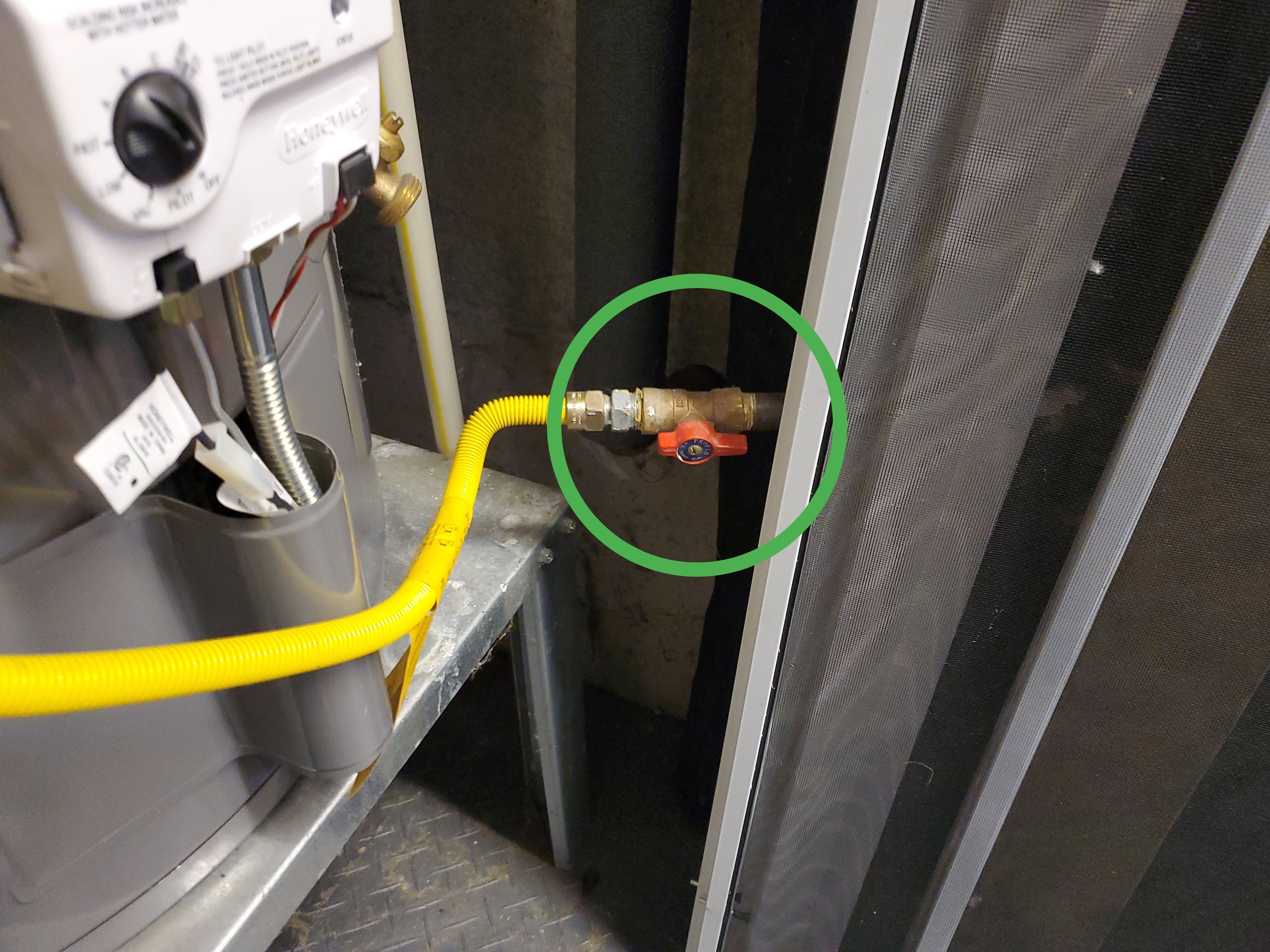 Main gas shut-off valve location and rotation direction: Left side of meter, Quarter turn clockwise, No Wrench Present