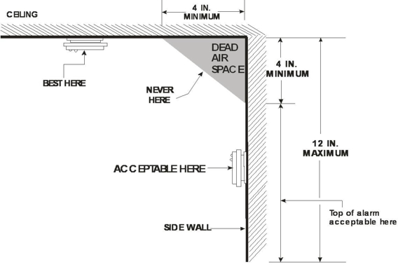 - Modern Building practices have smoke and carbon monoxide detectors, (CO) generally located in the same areas. Smoke and CO combined use detectors are suggested for improved safety in all required locations. Smoke/CO detectors are usually installed on the ceiling or high on the wall, as smoke rises and they need to detect it as early as possible. (Install smoke/CO per manufactures recommendations)