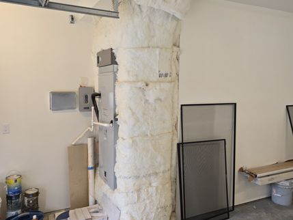 EXPOSED FIBERGLASS ON THE HVAC DUCTS IN THE GARAGE