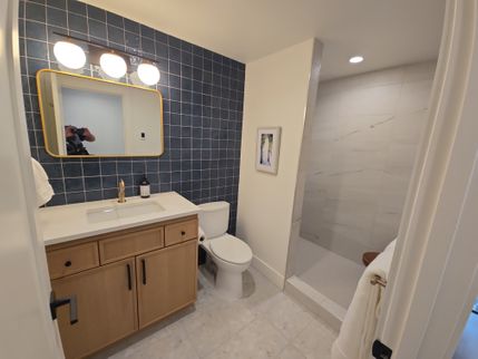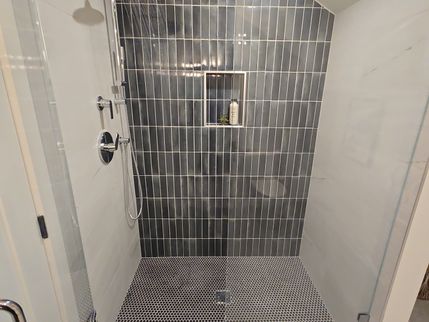 Please note that the longevity and reliability of the tile depend on what it is mounted on and what it is mounted with. This critical tile preparation is not visible to inspection. We make our best guesses about tile reliability using visual inspection and sounding for loose tiles. Moisture meters can also be used in some wall applications, but the moisture meter presents a false positive on most tile floors or pans. Regular tile cleaning and sealing can help prolong the life of a tile shower installation. Temporary repairs to tile can sometimes be made depending on how the tile was prepared and the owner's desire for a cosmetic appearance.