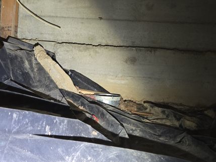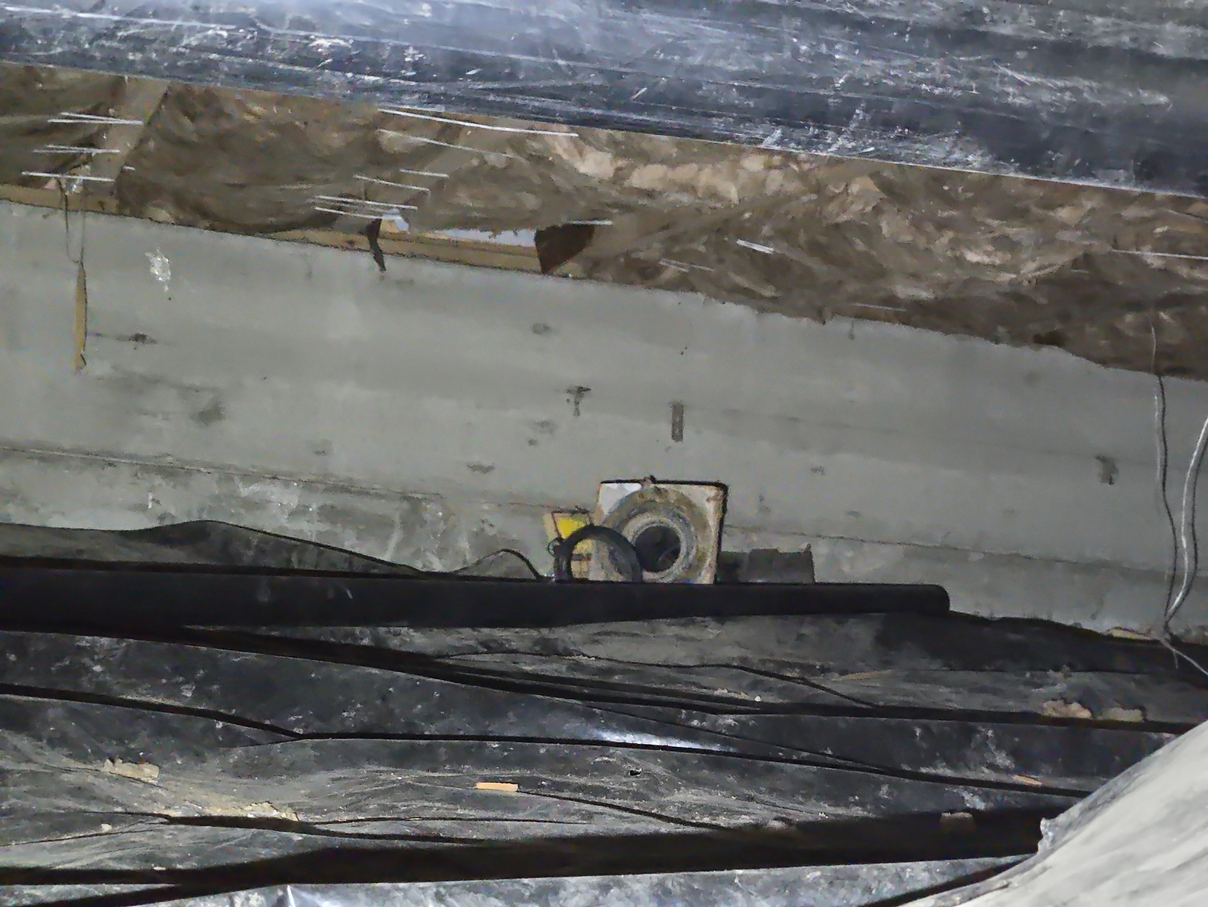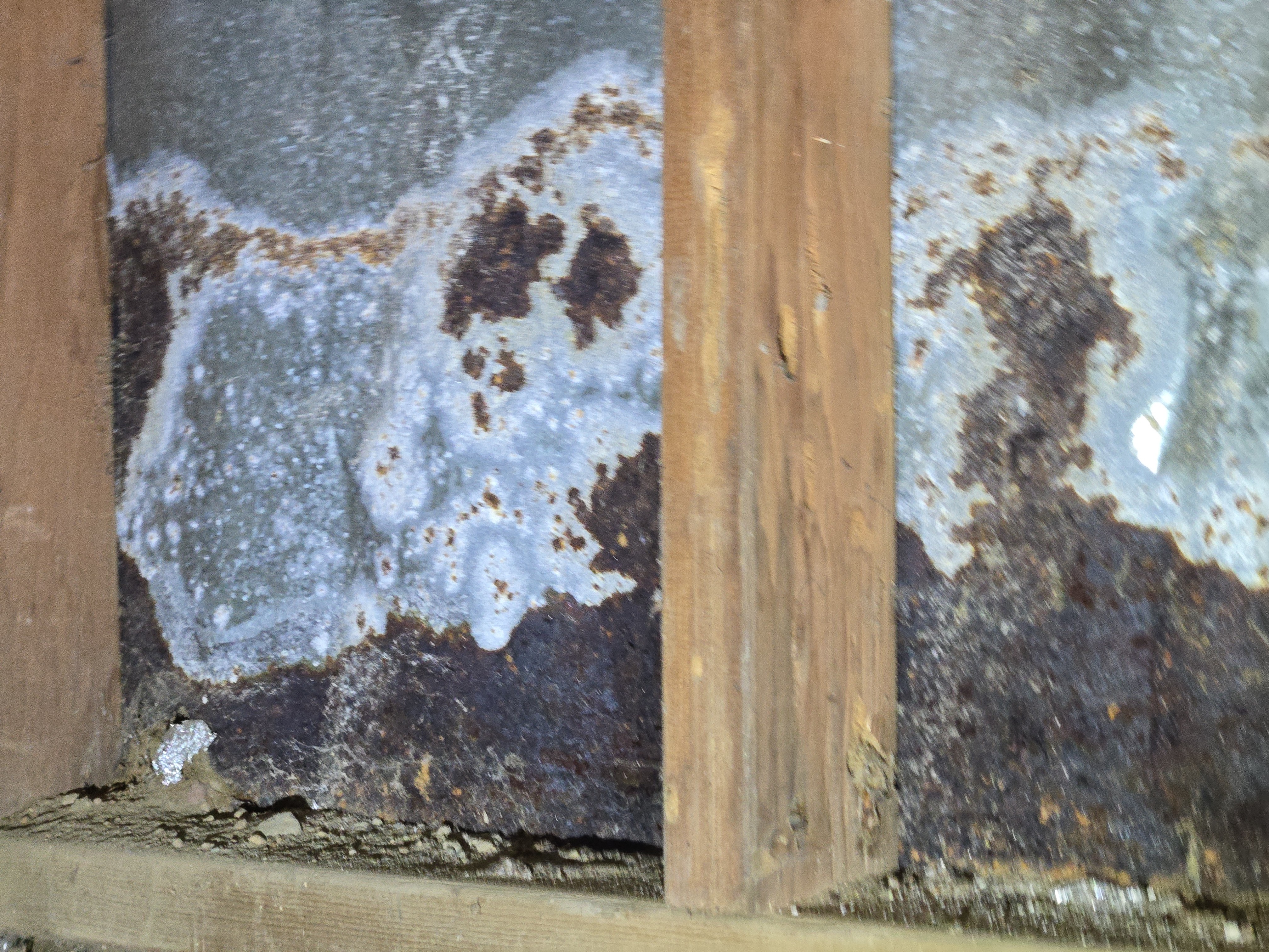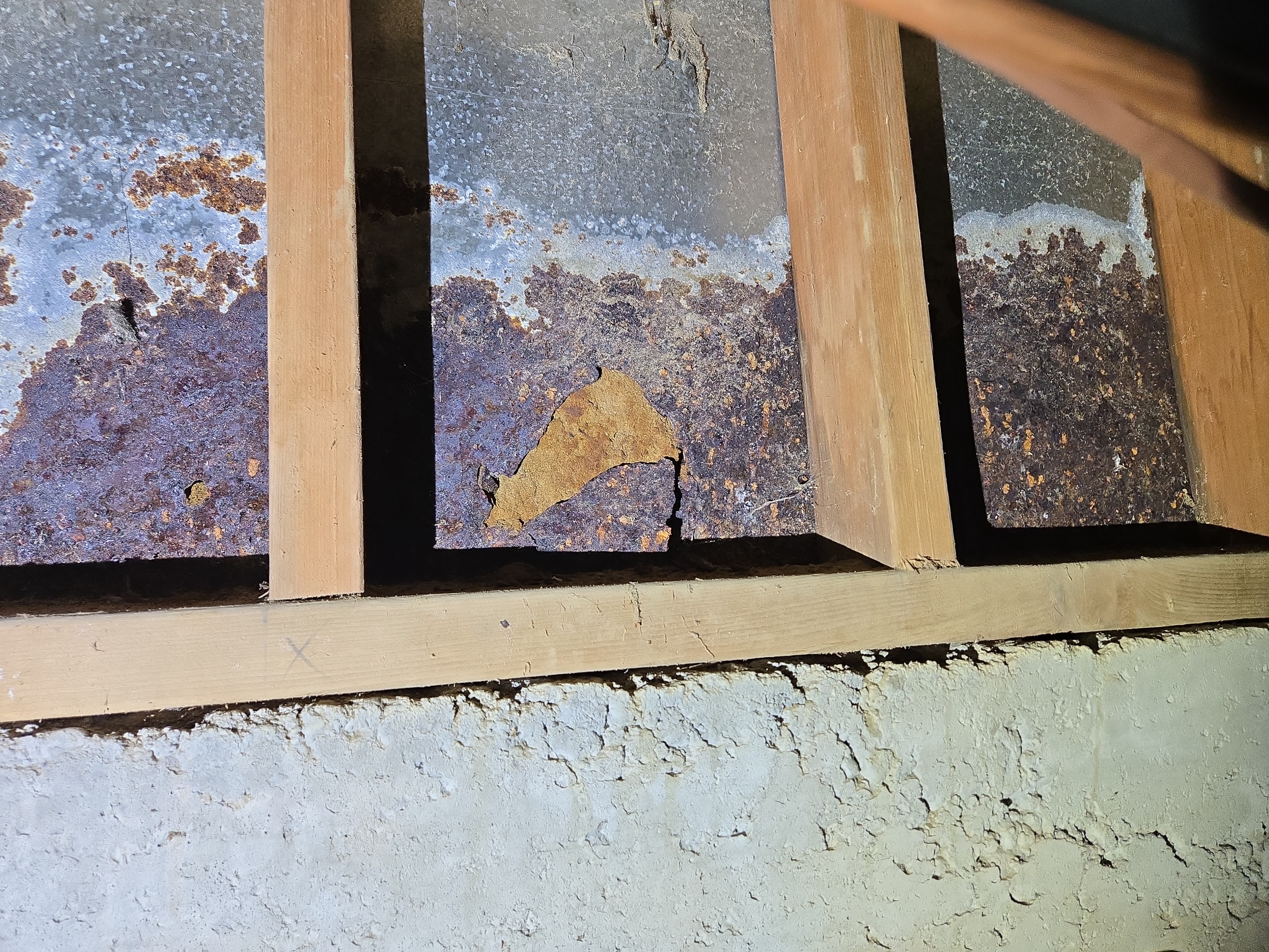 WOOD PONY WALL BELOW GRADE AND FAILING METAL FLASHING