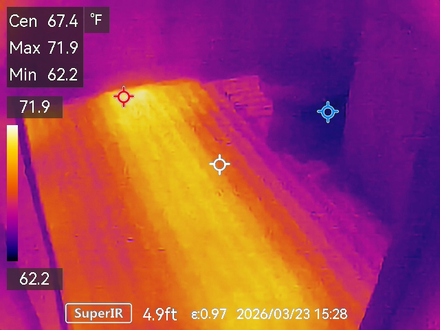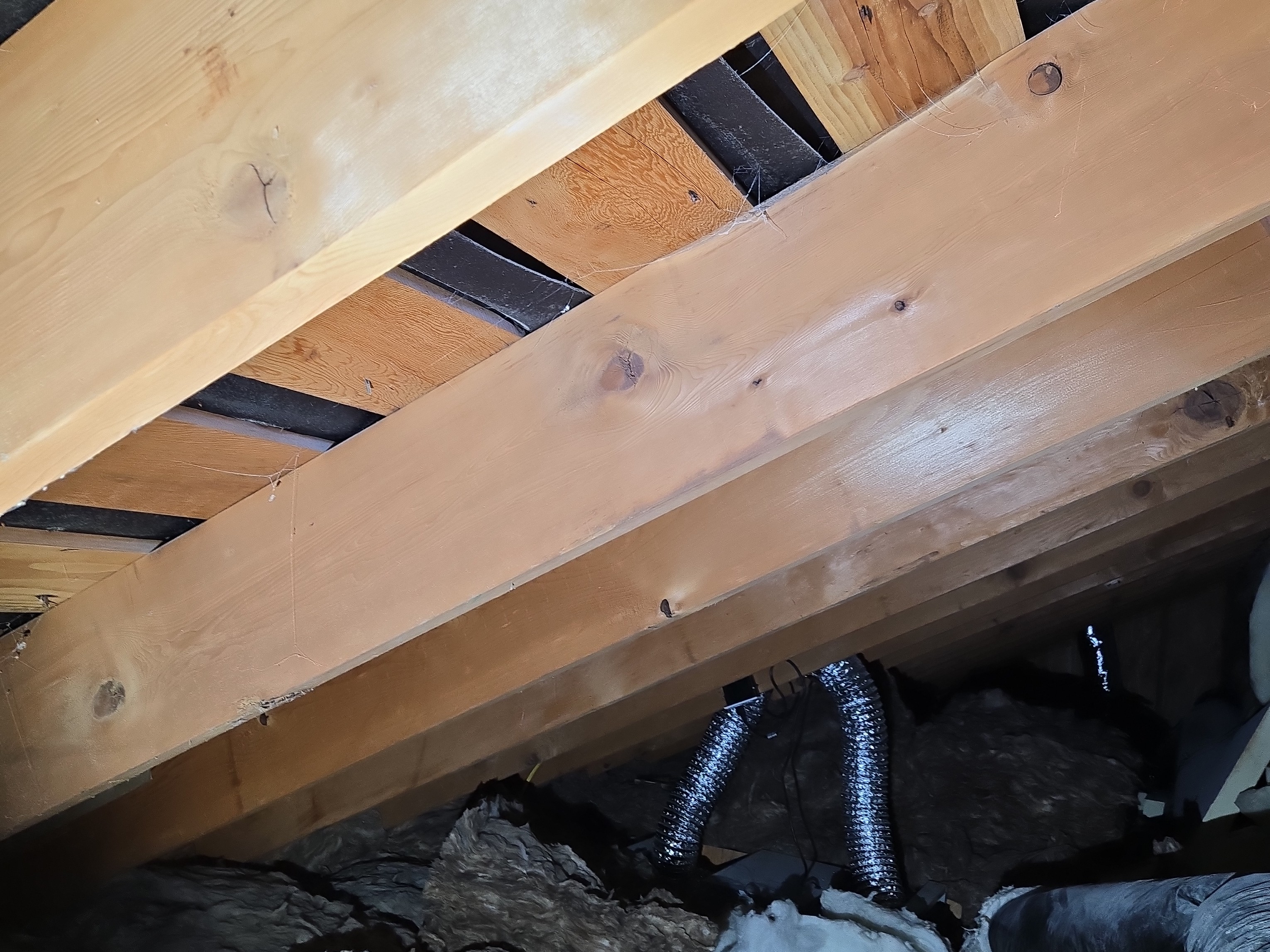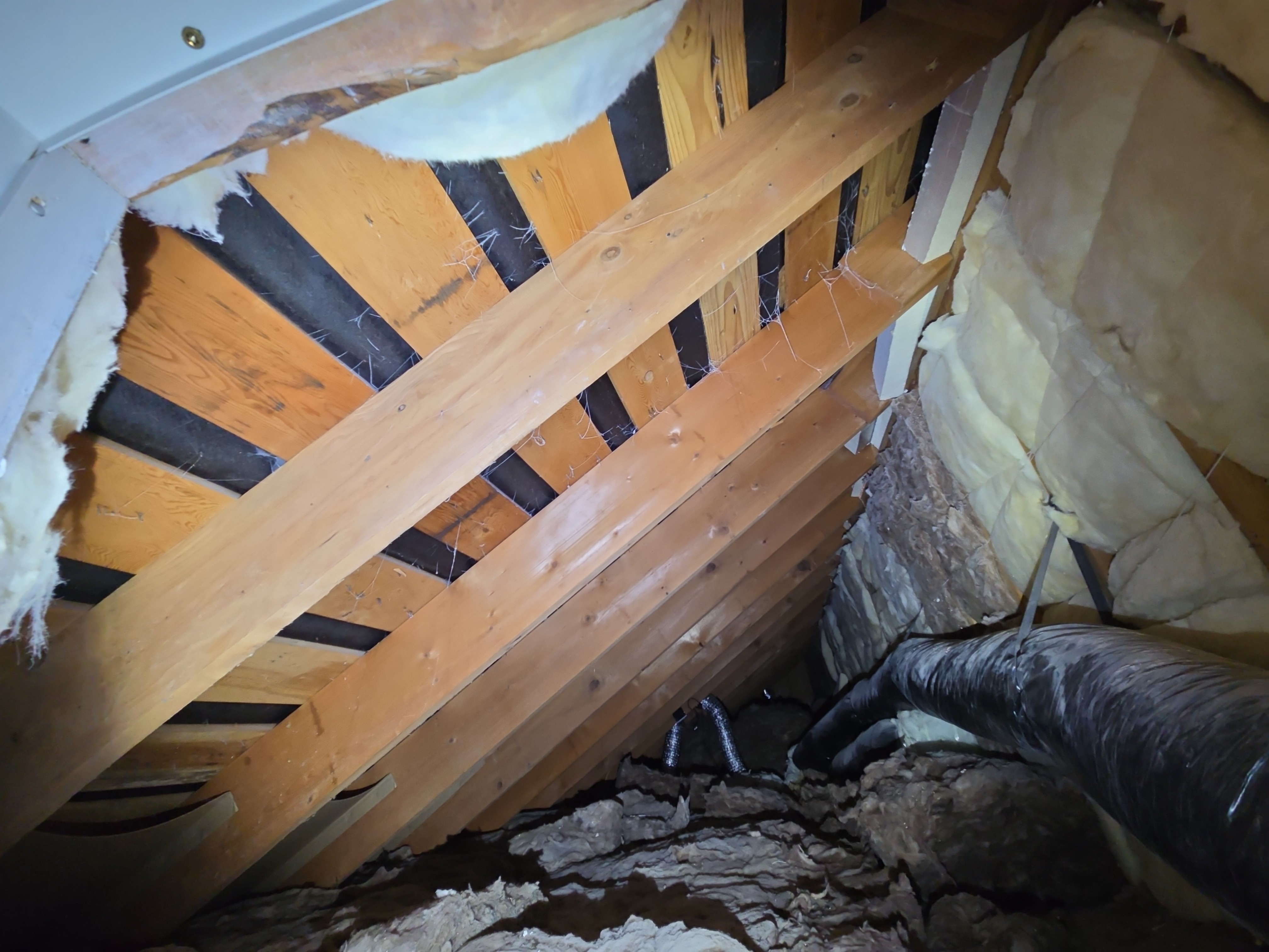 Note that this building has vaulted ceilings. There is a loft space, but this is not an attic as it is inside the thermal envelope. Inspection of the framing, thermal barriers, and ventilation system was limited.