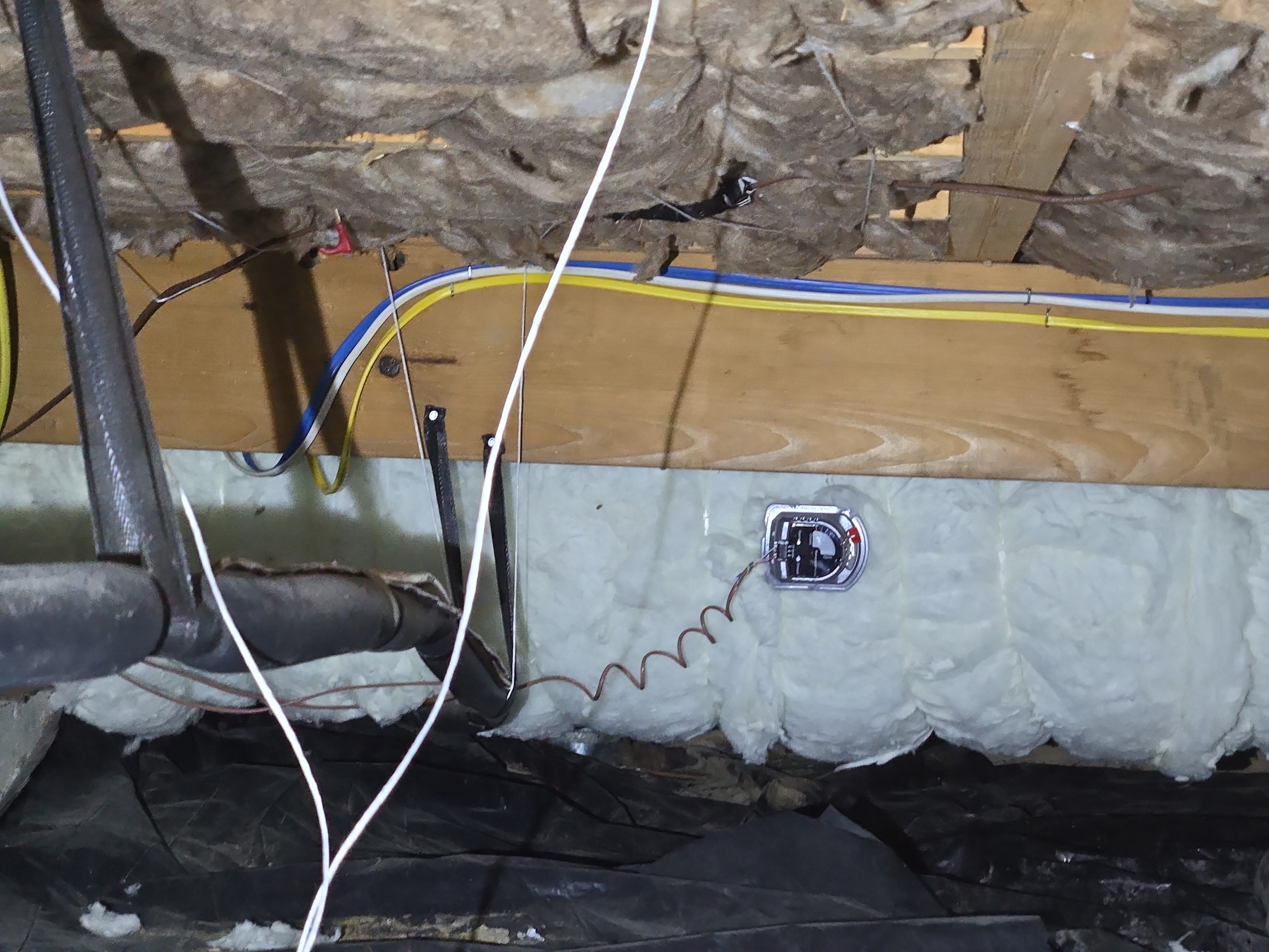 Abandoned wiring was noted in the crawl space This should be eliminated or properly terminated inside a listed junction box. It is often not feasible to determine if wire is still connected to a power source. I can test these with a voltage sensor, but they could be shut off by a switch or temporarily disconnected. For optimal safety, all abandoned wires should be eliminated or properly terminated inside a junction box.