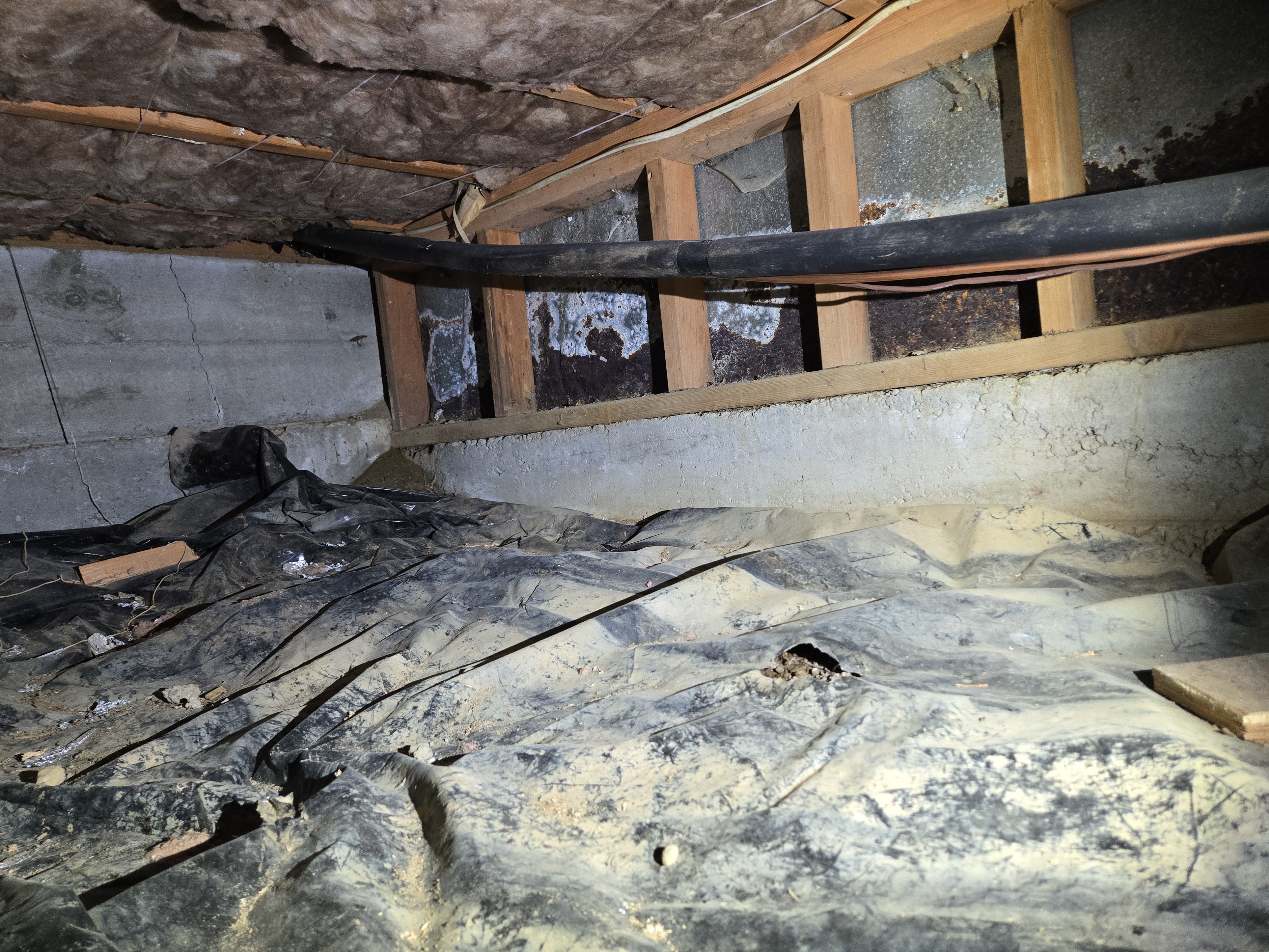 During inspection of the crawl space, every effort is made to inspect the entire space. Visual inspection of crawl spaces is difficult and limited as access is often restricted by pipes, ducts and sub-floor insulation as well as limited clearances.