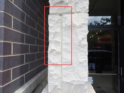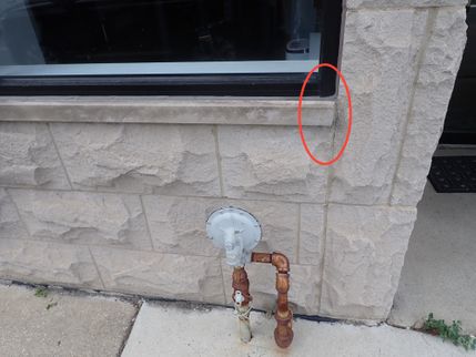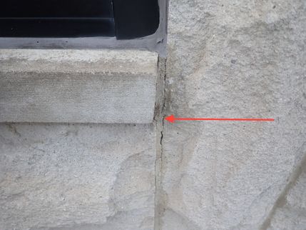 Cracking was noted in the masonry joints between dissimilar materials, stone features, stone coping and corner joints on the structure. All dissimilar elements on the exterior walls of the structure such as: brick-to-stone; brick-to-concrete block; concrete block-to-glass block, all interior corners and all construction joints should be joined one to the other and sealed against moisture through the use of backer rod and urethane caulk or its equivalent. These elements have either differing coefficients of expansion and contraction in relation to temperature and moisture and/or are subject to movement which can lead to cracking of the cladding material and/or of the mortar joints. In order to reduce the potential for moisture related damage, the existing cement mortar joints should be ground out and replaced with the appropriate backer rod and ASTM approved caulking by a qualified masonry repair contractor.