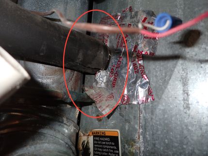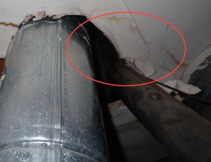 Open gaps were noted in the ceiling of the furnace closet that can allow smoke, carbon monoxide, and superheated gases to pass into other areas of the condominium in the event of a fire. In order to close off the gaps it is recommended that all opening be sealed with intumescent foam or other appropriate fireproofing materials.