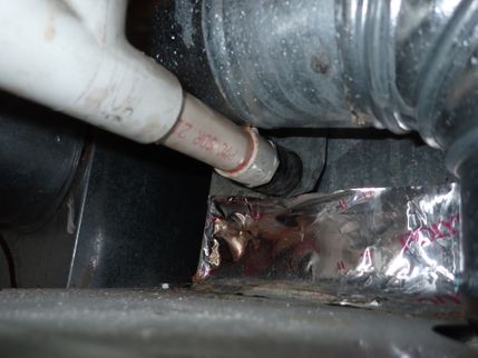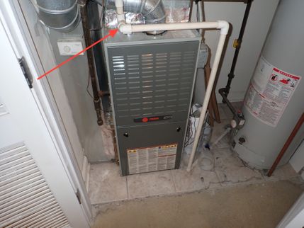 Splashing, leaking and energy losses can occur in the evaporator drain pan from air backflow through the drain pipe for the A/C condensation. The installation of a trap on the condensate drain by a qualified HVAC contractor is recommended downstream of it's penetration from the furnace casing and upstream of the humidifier drain (if one is installed).