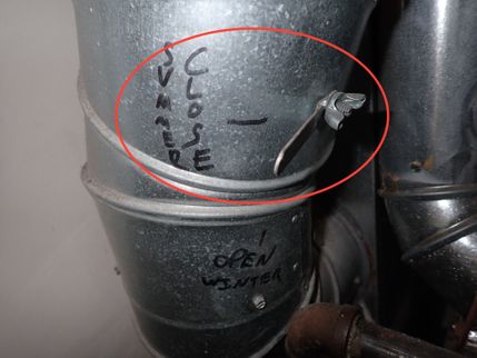 A humidifier duct damper must be positioned seasonally (summer/closed and winter/open settings) on the humidifier's bypass duct in order to prevent return air from bypassing the evaporator coil. In order to maximize energy efficiency and indoor air comfort, a duct damper is essential on bypass style humidifier such as this.