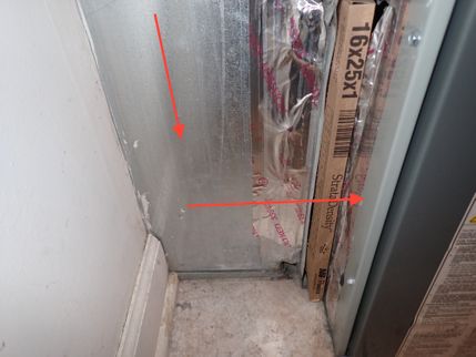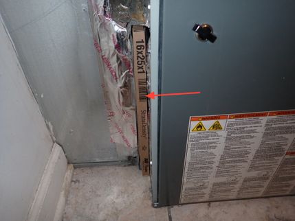 The filter rack for the HVAC system is unsealed. In order to to prevent "air filter bypass" and the resulting dirt accumulation inside the operating components of the HVAC system, it is recommended that the large gaps around the HVAC air filter slot be sealed.